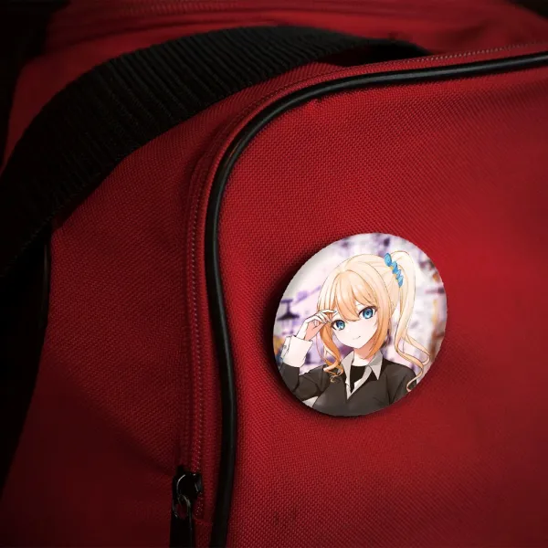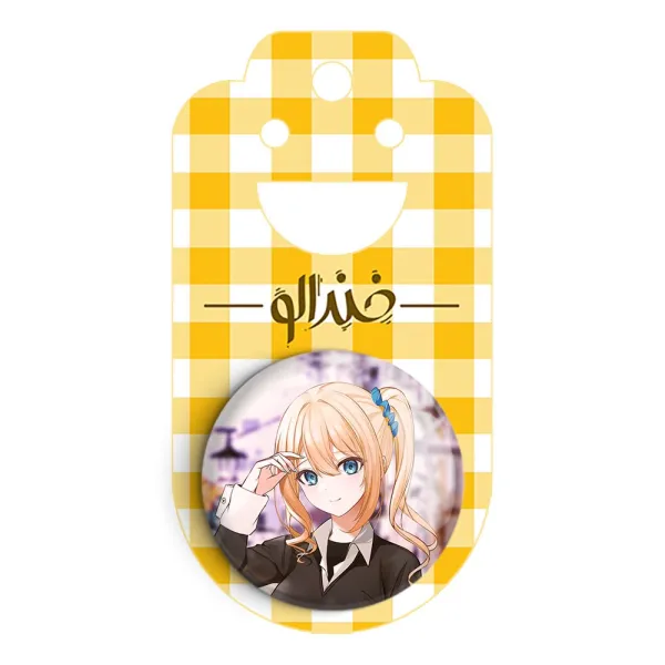 پیکسل 44 میلی متری هایاساکا انیمه کاگویا ساما خندالو با روکش سلفون حرارتی مات مخملی ضدخش و قطعه پشتی رنگی تولید شده است.پلاستیکی پشت پیکسل با سوزن یک تکه ثابت و بدون لغزش و جا به جایی، ایستایی بسیار بهتری نسبت به پشتی فلزی پیکسل دارند که این مهم در تولید این محصول نیز رعایت شده است.