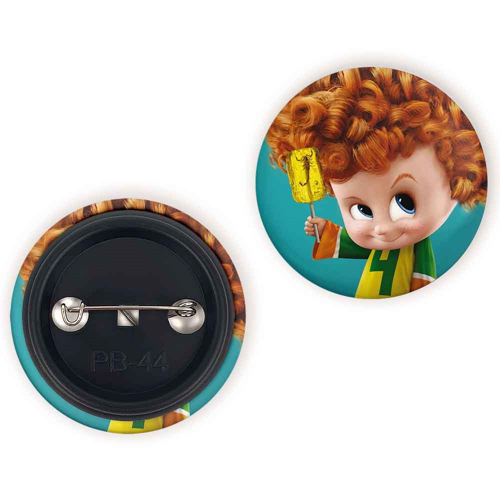 پیکسل 44 میلی متری هتل ترانسیلوانیا Hotel Transylvania خندالو با روکش سلفون حرارتی مات مخملی ضدخش و قطعه پشتی رنگی تولید شده است.پلاستیکی پشت پیکسل با سوزن یک تکه ثابت و بدون لغزش و جا به جایی، ایستایی بسیار بهتری نسبت به پشتی فلزی پیکسل دارند که این مهم در تولید این محصول نیز رعایت شده است.