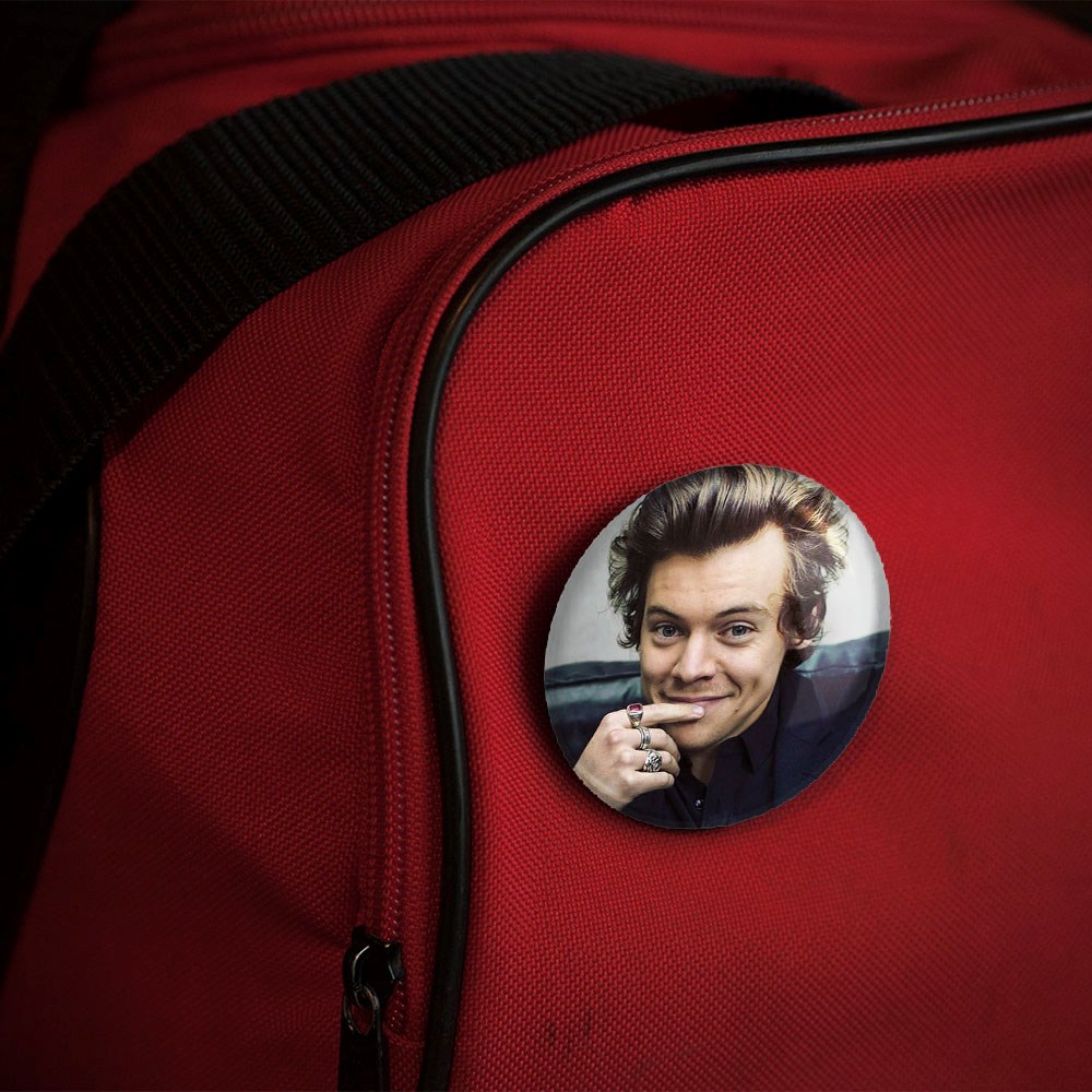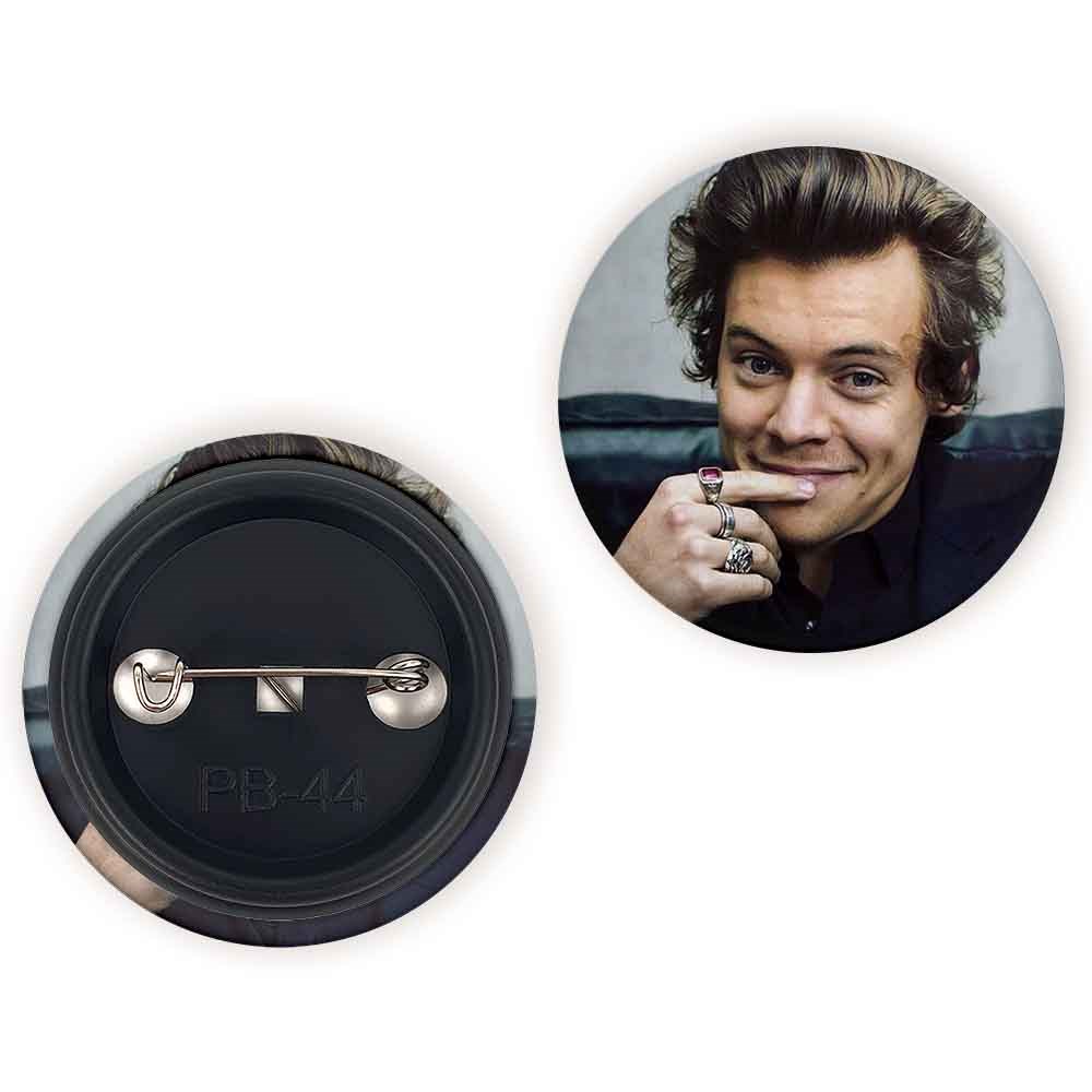 پیکسل 44 میلی متری هری استایلز گروه موسیقی وان دایرکشن One Direction خندالو با روکش سلفون حرارتی مات مخملی ضدخش و قطعه پشتی رنگی تولید شده است.پلاستیکی پشت پیکسل با سوزن یک تکه ثابت و بدون لغزش و جا به جایی، ایستایی بسیار بهتری نسبت به پشتی فلزی پیکسل دارند که این مهم در تولید این محصول نیز رعایت شده است.