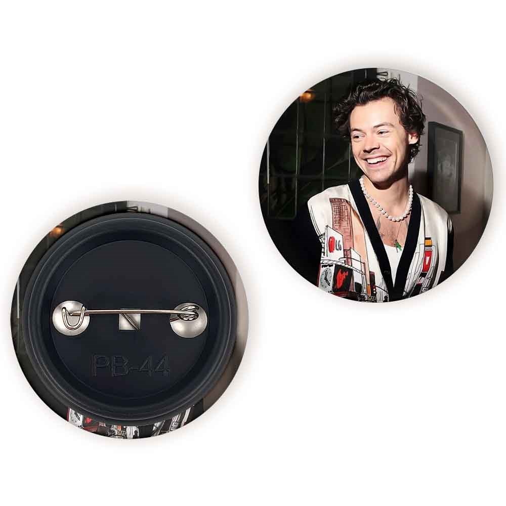پیکسل 44 میلی متری هری استایلز گروه موسیقی وان دایرکشن One Direction خندالو با روکش سلفون حرارتی مات مخملی ضدخش و قطعه پشتی رنگی تولید شده است.پلاستیکی پشت پیکسل با سوزن یک تکه ثابت و بدون لغزش و جا به جایی، ایستایی بسیار بهتری نسبت به پشتی فلزی پیکسل دارند که این مهم در تولید این محصول نیز رعایت شده است.