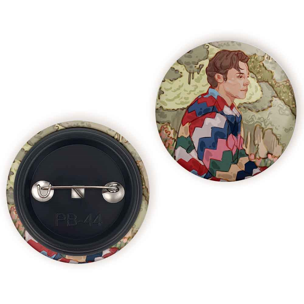 پیکسل 44 میلی متری هری استایلز گروه موسیقی وان دایرکشن One Direction خندالو با روکش سلفون حرارتی مات مخملی ضدخش و قطعه پشتی رنگی تولید شده است.پلاستیکی پشت پیکسل با سوزن یک تکه ثابت و بدون لغزش و جا به جایی، ایستایی بسیار بهتری نسبت به پشتی فلزی پیکسل دارند که این مهم در تولید این محصول نیز رعایت شده است.