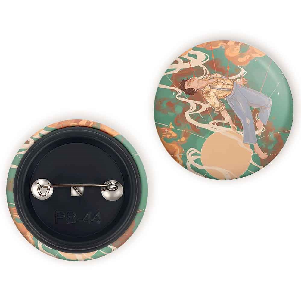 پیکسل 44 میلی متری هری استایلز گروه موسیقی وان دایرکشن One Direction خندالو با روکش سلفون حرارتی مات مخملی ضدخش و قطعه پشتی رنگی تولید شده است.پلاستیکی پشت پیکسل با سوزن یک تکه ثابت و بدون لغزش و جا به جایی، ایستایی بسیار بهتری نسبت به پشتی فلزی پیکسل دارند که این مهم در تولید این محصول نیز رعایت شده است.