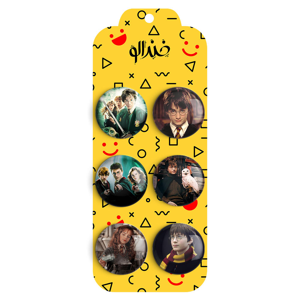مجموعه 6 عددی پیکسل خندالو طرح هری پاتر (Harry Potter) با روکش سلفون حرارتی براق ضدخش و قطعه پشتی رنگی تولید شده است. قطعات پشتی از میان 6 رنگ سفید، مشکی، صورتی، زرد، آبی و قرمز که با توجه به نوع و رنگبندی طرح روی پیکسل انتخاب شده اند تولید می شود و در هر بسته بندی مطابق عکس محصول می باشد.