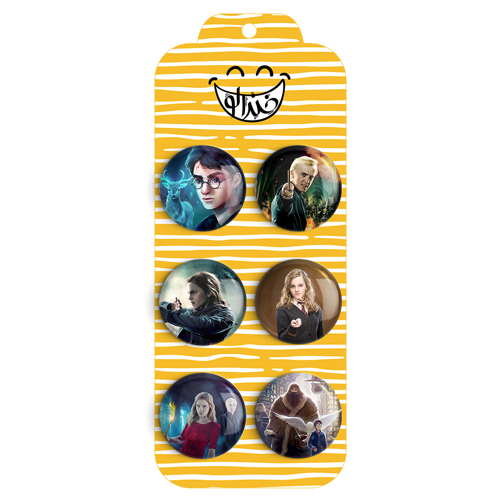 مجموعه 6 عددی پیکسل خندالو طرح هری پاتر (Harry Potter) با روکش سلفون حرارتی براق ضدخش و قطعه پشتی رنگی تولید شده است. قطعات پشتی از میان 6 رنگ سفید، مشکی، صورتی، زرد، آبی و قرمز که با توجه به نوع و رنگبندی طرح روی پیکسل انتخاب شده اند تولید می شود و در هر بسته بندی مطابق عکس محصول می باشد.