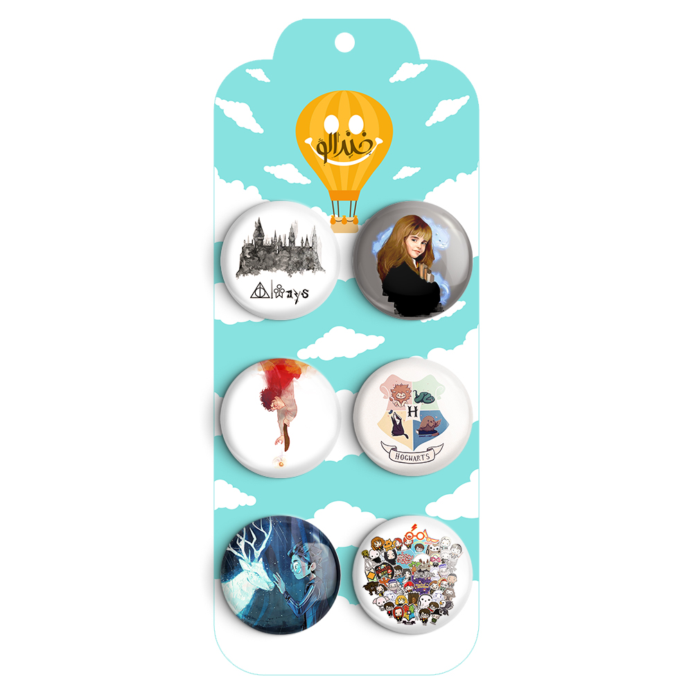 مجموعه 6 عددی پیکسل خندالو طرح هری پاتر (Harry Potter) با روکش سلفون حرارتی براق ضدخش و قطعه پشتی رنگی تولید شده است. قطعات پشتی از میان 6 رنگ سفید، مشکی، صورتی، زرد، آبی و قرمز که با توجه به نوع و رنگبندی طرح روی پیکسل انتخاب شده اند تولید می شود و در هر بسته بندی مطابق عکس محصول می باشد.