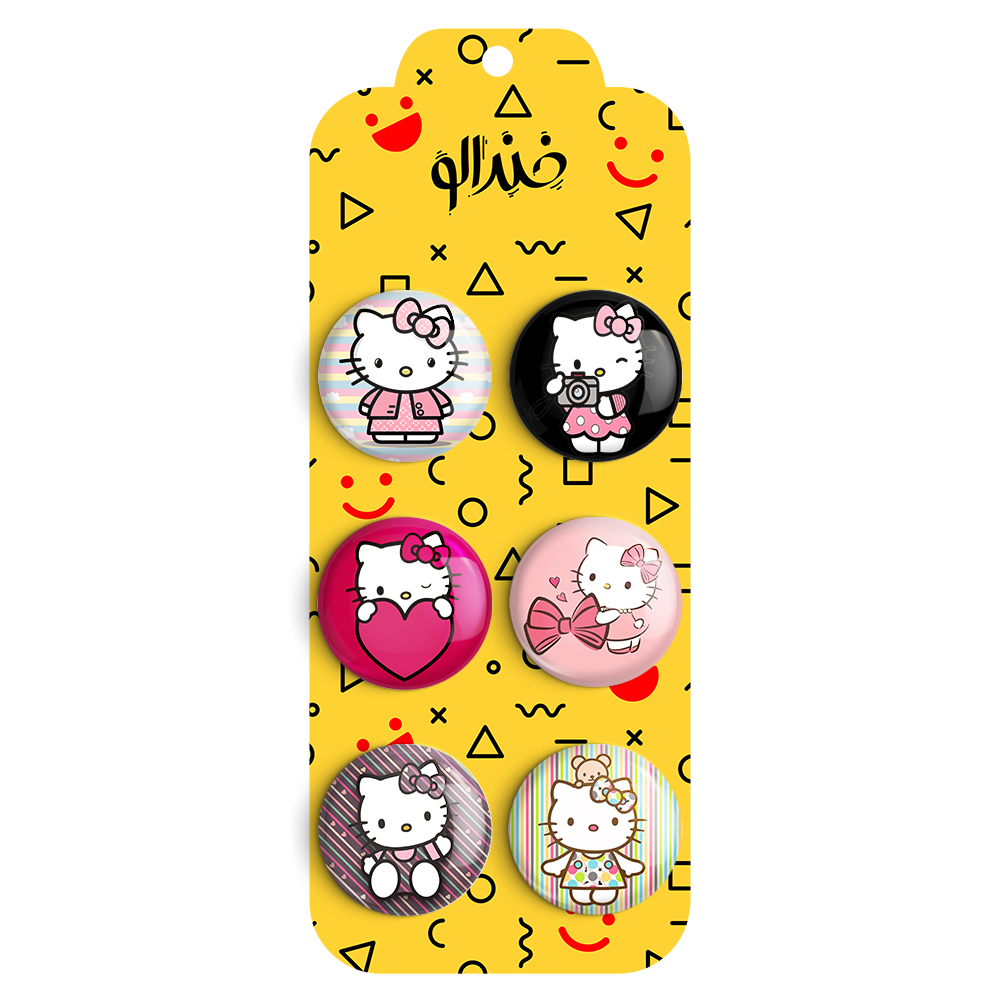 مجموعه 6 عددی پیکسل خندالو طرح هلوکیتی (Hello Kitty) با روکش سلفون حرارتی براق ضدخش و قطعه پشتی رنگی تولید شده است. قطعات پشتی از میان 6 رنگ سفید، مشکی، صورتی، زرد، آبی و قرمز که با توجه به نوع و رنگبندی طرح روی پیکسل انتخاب شده اند تولید می شود و در هر بسته بندی مطابق عکس محصول می باشد.