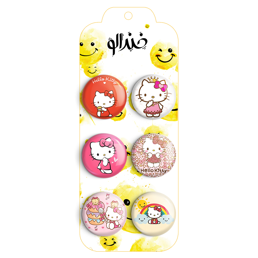 مجموعه 6 عددی پیکسل خندالو طرح هلوکیتی (Hello Kitty) با روکش سلفون حرارتی براق ضدخش و قطعه پشتی رنگی تولید شده است. قطعات پشتی از میان 6 رنگ سفید، مشکی، صورتی، زرد، آبی و قرمز که با توجه به نوع و رنگبندی طرح روی پیکسل انتخاب شده اند تولید می شود و در هر بسته بندی مطابق عکس محصول می باشد.