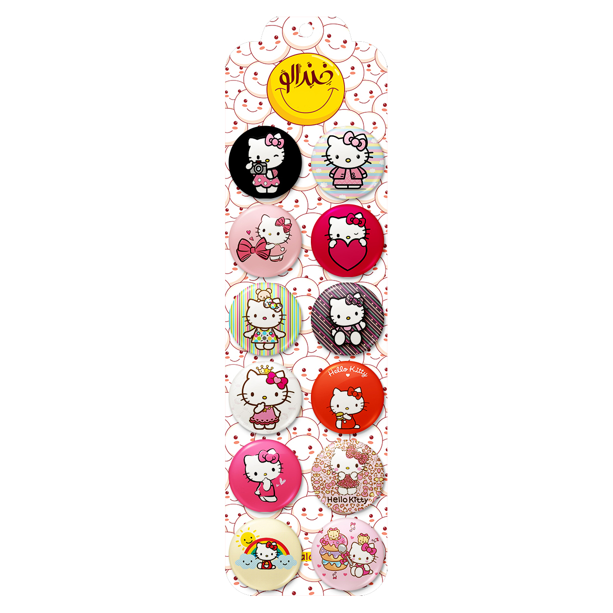 پک 12 عددی پیکسل خندالو طرح هلوکیتی (Hello Kitty) با روکش سلفون حرارتی براق ضدخش و قطعه پشتی رنگی تولید شده است. قطعات پشتی از میان 6 رنگ سفید، مشکی، صورتی، زرد، آبی و قرمز که با توجه به نوع و رنگبندی طرح روی پیکسل انتخاب شده اند تولید می شود و در هر بسته بندی مطابق عکس محصول می باشد. قطعات پلاستیکی پشت پیکسل با سوزن یک تکه ثابت و بدون لغزش و جا به جایی، ایستایی بسیار بهتری نسبت به پشتی فلزی پیکسل دارند که این مهم در تولید این محصول نیز رعایت شده است.