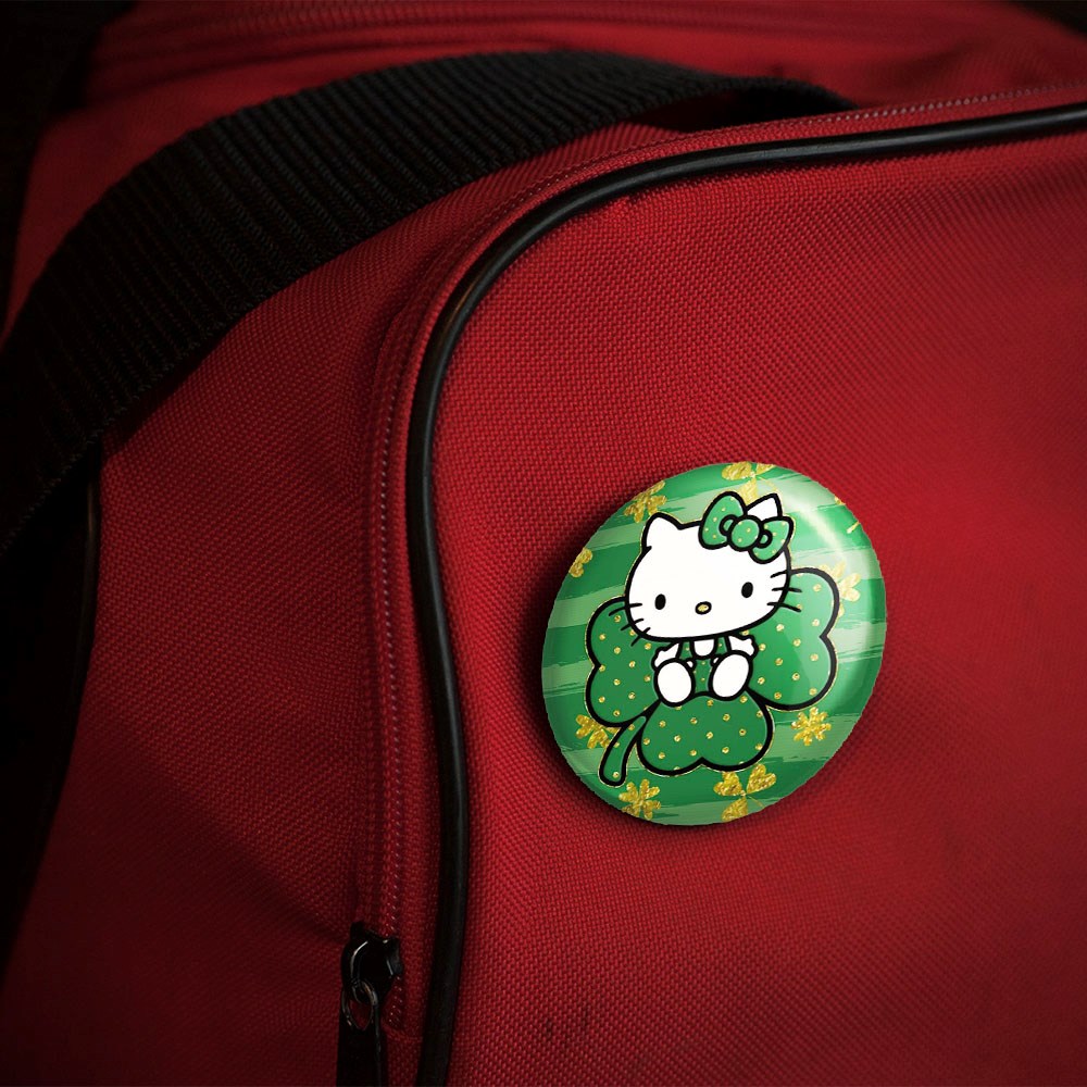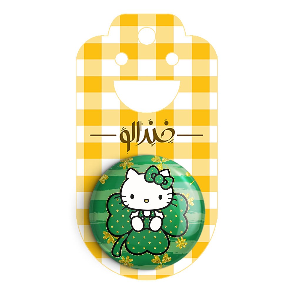 پیکسل 44 میلی متری هلو کیتی خندالو با روکش سلفون حرارتی مات مخملی ضدخش و قطعه پشتی رنگی تولید شده است.پلاستیکی پشت پیکسل با سوزن یک تکه ثابت و بدون لغزش و جا به جایی، ایستایی بسیار بهتری نسبت به پشتی فلزی پیکسل دارند که این مهم در تولید این محصول نیز رعایت شده است.