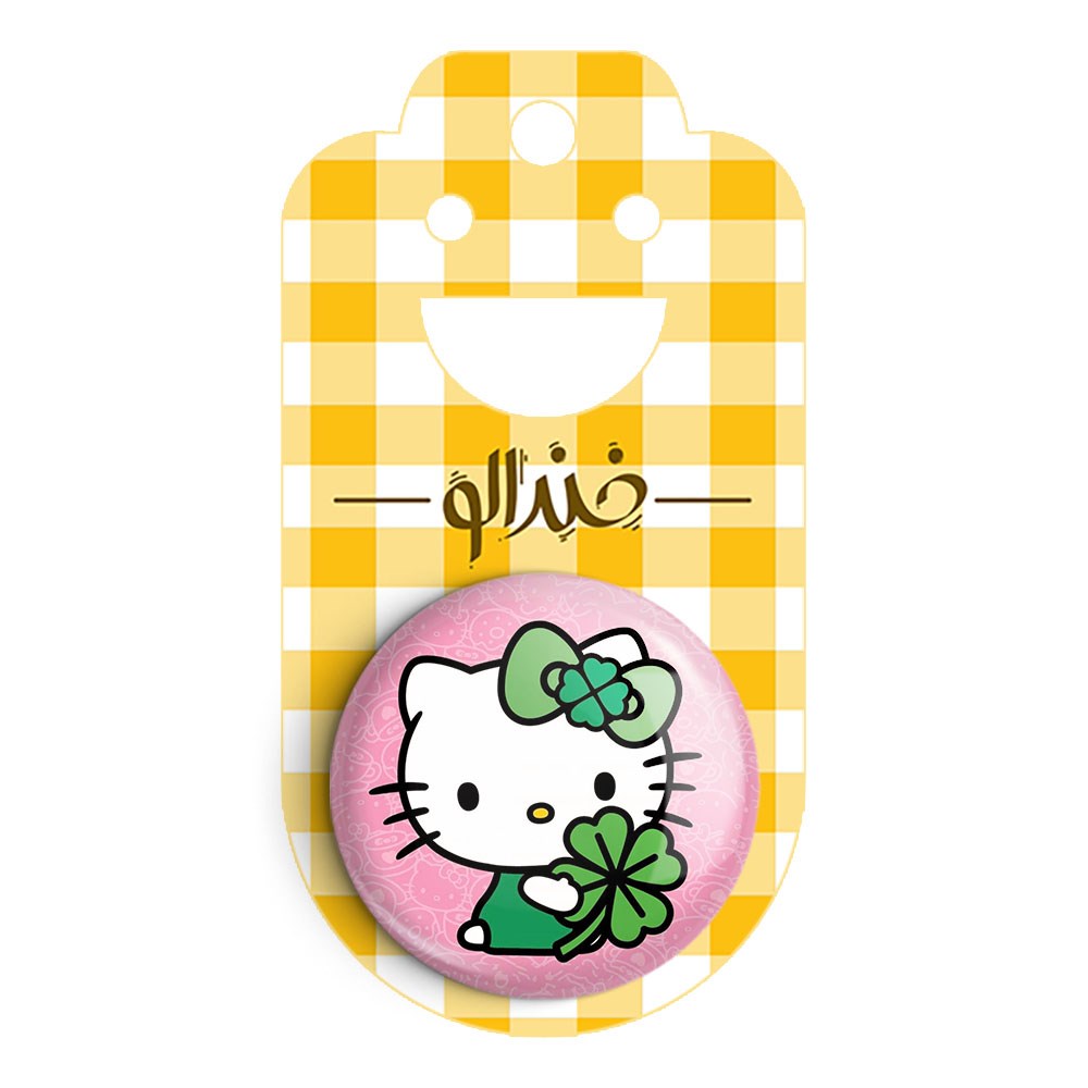 پیکسل 44 میلی متری هلو کیتی خندالو با روکش سلفون حرارتی مات مخملی ضدخش و قطعه پشتی رنگی تولید شده است.پلاستیکی پشت پیکسل با سوزن یک تکه ثابت و بدون لغزش و جا به جایی، ایستایی بسیار بهتری نسبت به پشتی فلزی پیکسل دارند که این مهم در تولید این محصول نیز رعایت شده است.