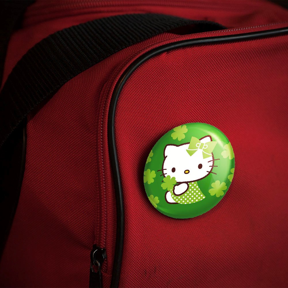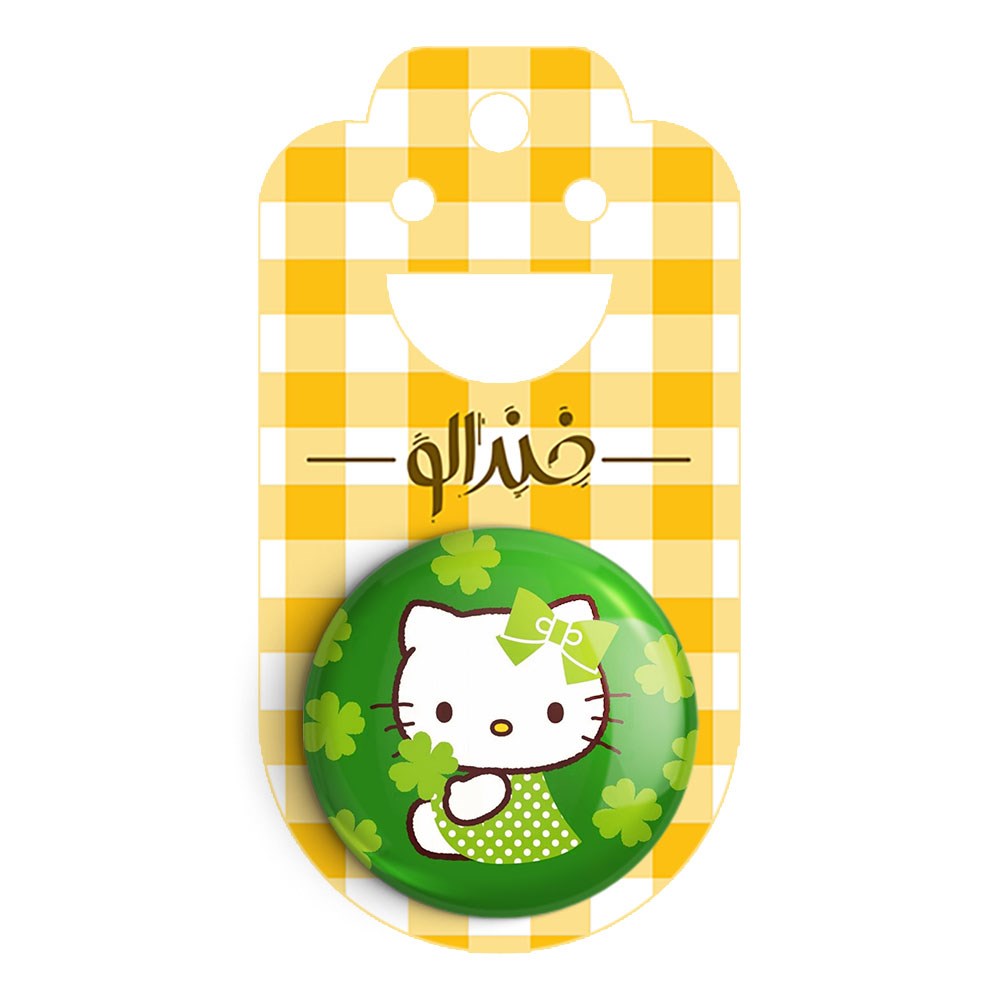 پیکسل 44 میلی متری هلو کیتی خندالو با روکش سلفون حرارتی مات مخملی ضدخش و قطعه پشتی رنگی تولید شده است.پلاستیکی پشت پیکسل با سوزن یک تکه ثابت و بدون لغزش و جا به جایی، ایستایی بسیار بهتری نسبت به پشتی فلزی پیکسل دارند که این مهم در تولید این محصول نیز رعایت شده است.