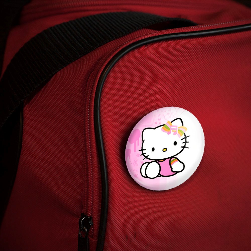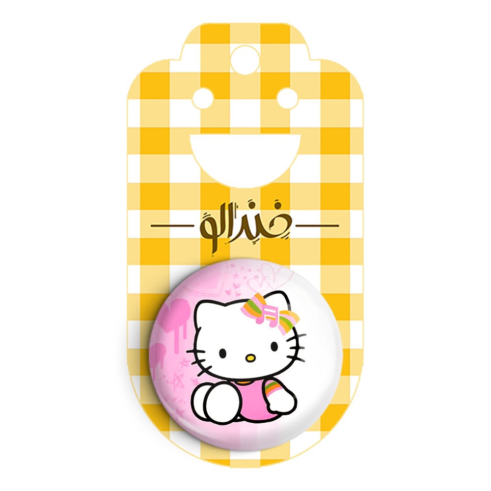پیکسل 44 میلی متری هلو کیتی خندالو با روکش سلفون حرارتی مات مخملی ضدخش و قطعه پشتی رنگی تولید شده است.پلاستیکی پشت پیکسل با سوزن یک تکه ثابت و بدون لغزش و جا به جایی، ایستایی بسیار بهتری نسبت به پشتی فلزی پیکسل دارند که این مهم در تولید این محصول نیز رعایت شده است.