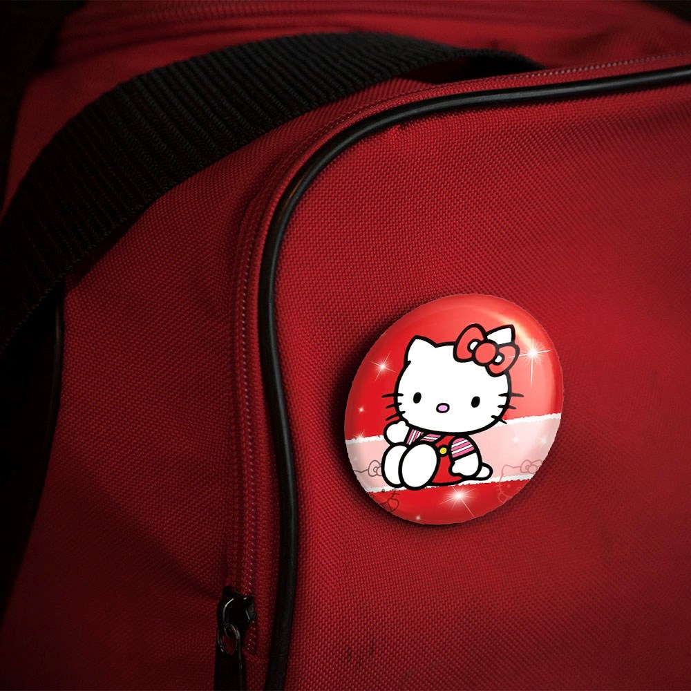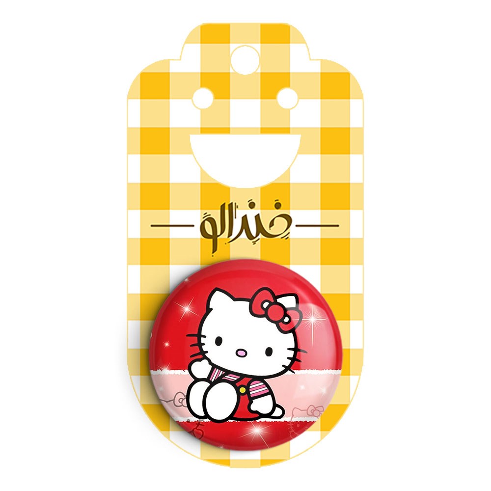 پیکسل 44 میلی متری هلو کیتی خندالو با روکش سلفون حرارتی مات مخملی ضدخش و قطعه پشتی رنگی تولید شده است.پلاستیکی پشت پیکسل با سوزن یک تکه ثابت و بدون لغزش و جا به جایی، ایستایی بسیار بهتری نسبت به پشتی فلزی پیکسل دارند که این مهم در تولید این محصول نیز رعایت شده است.