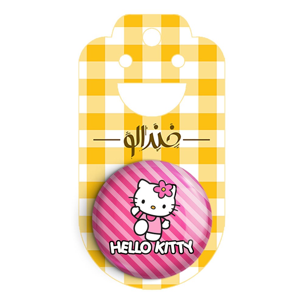 پیکسل 44 میلی متری هلو کیتی خندالو با روکش سلفون حرارتی مات مخملی ضدخش و قطعه پشتی رنگی تولید شده است.پلاستیکی پشت پیکسل با سوزن یک تکه ثابت و بدون لغزش و جا به جایی، ایستایی بسیار بهتری نسبت به پشتی فلزی پیکسل دارند که این مهم در تولید این محصول نیز رعایت شده است.