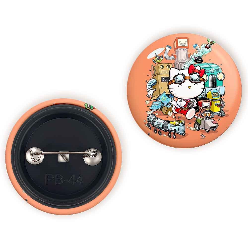 پیکسل 44 میلی متری هلو کیتی خندالو با روکش سلفون حرارتی مات مخملی ضدخش و قطعه پشتی رنگی تولید شده است.پلاستیکی پشت پیکسل با سوزن یک تکه ثابت و بدون لغزش و جا به جایی، ایستایی بسیار بهتری نسبت به پشتی فلزی پیکسل دارند که این مهم در تولید این محصول نیز رعایت شده است.