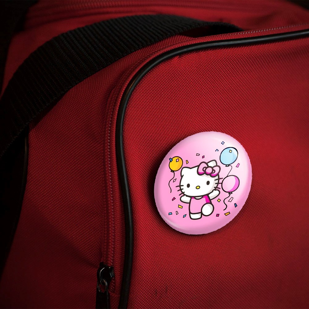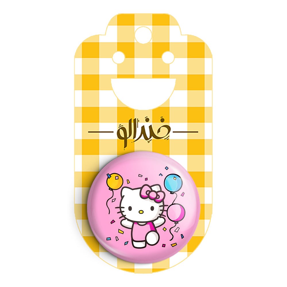 پیکسل 44 میلی متری هلو کیتی خندالو با روکش سلفون حرارتی مات مخملی ضدخش و قطعه پشتی رنگی تولید شده است.پلاستیکی پشت پیکسل با سوزن یک تکه ثابت و بدون لغزش و جا به جایی، ایستایی بسیار بهتری نسبت به پشتی فلزی پیکسل دارند که این مهم در تولید این محصول نیز رعایت شده است.