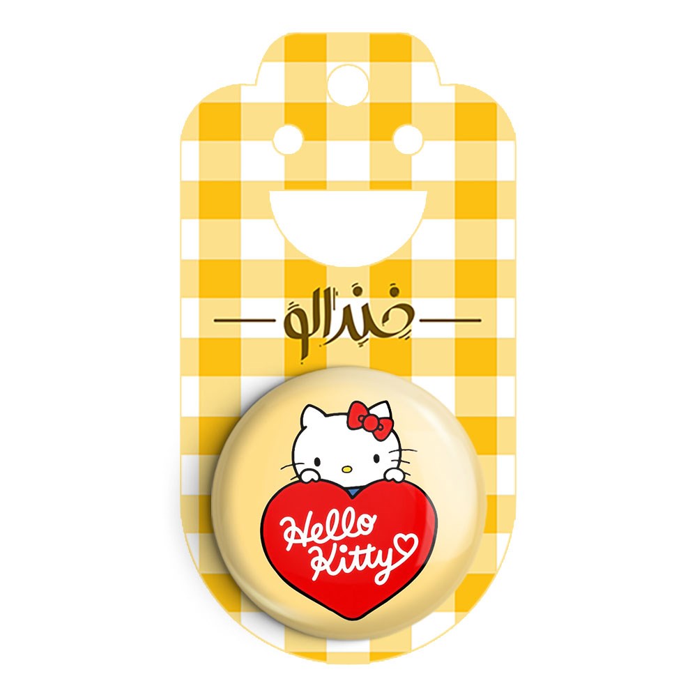 پیکسل 44 میلی متری هلو کیتی خندالو با روکش سلفون حرارتی مات مخملی ضدخش و قطعه پشتی رنگی تولید شده است.پلاستیکی پشت پیکسل با سوزن یک تکه ثابت و بدون لغزش و جا به جایی، ایستایی بسیار بهتری نسبت به پشتی فلزی پیکسل دارند که این مهم در تولید این محصول نیز رعایت شده است.