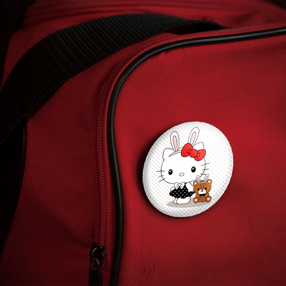 پیکسل 44 میلی متری هلو کیتی Hello Kitty خندالو با روکش سلفون حرارتی مات مخملی ضدخش و قطعه پشتی رنگی تولید شده است.پلاستیکی پشت پیکسل با سوزن یک تکه ثابت و بدون لغزش و جا به جایی، ایستایی بسیار بهتری نسبت به پشتی فلزی پیکسل دارند که این مهم در تولید این محصول نیز رعایت شده است.