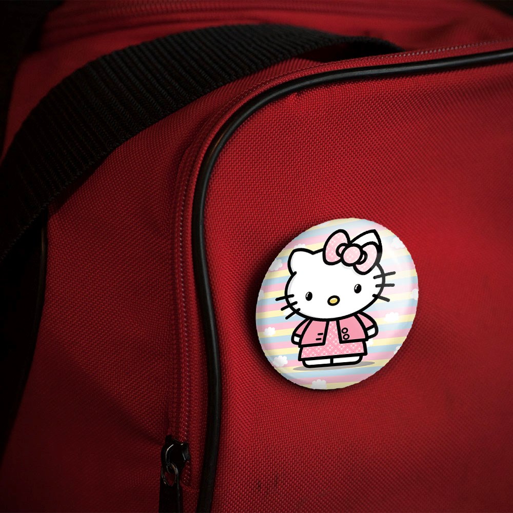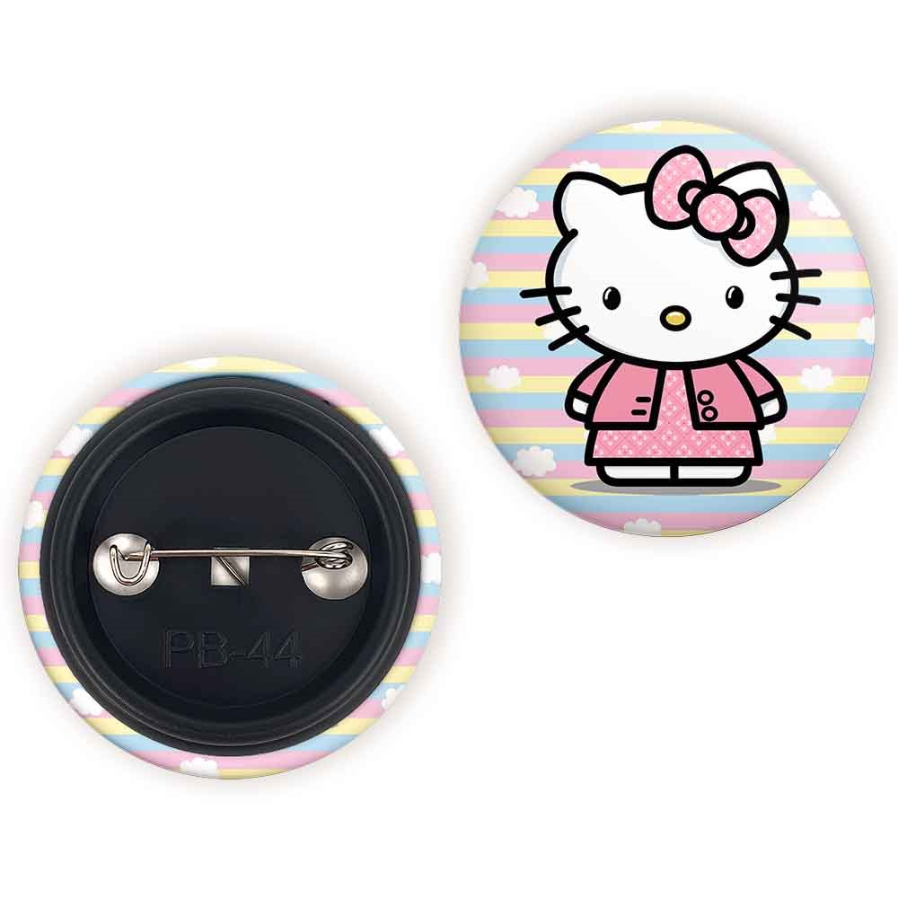 پیکسل 44 میلی متری هلو کیتی Hello Kitty خندالو با روکش سلفون حرارتی مات مخملی ضدخش و قطعه پشتی رنگی تولید شده است.پلاستیکی پشت پیکسل با سوزن یک تکه ثابت و بدون لغزش و جا به جایی، ایستایی بسیار بهتری نسبت به پشتی فلزی پیکسل دارند که این مهم در تولید این محصول نیز رعایت شده است.