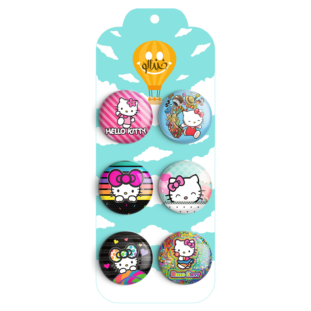 مجموعه 6 عددی پیکسل خندالو طرح هلو کیتی (Hello Kitty) با روکش سلفون حرارتی براق ضدخش و قطعه پشتی رنگی تولید شده است. قطعات پشتی از میان 6 رنگ سفید، مشکی، صورتی، زرد، آبی و قرمز که با توجه به نوع و رنگبندی طرح روی پیکسل انتخاب شده اند تولید می شود و در هر بسته بندی مطابق عکس محصول می باشد.