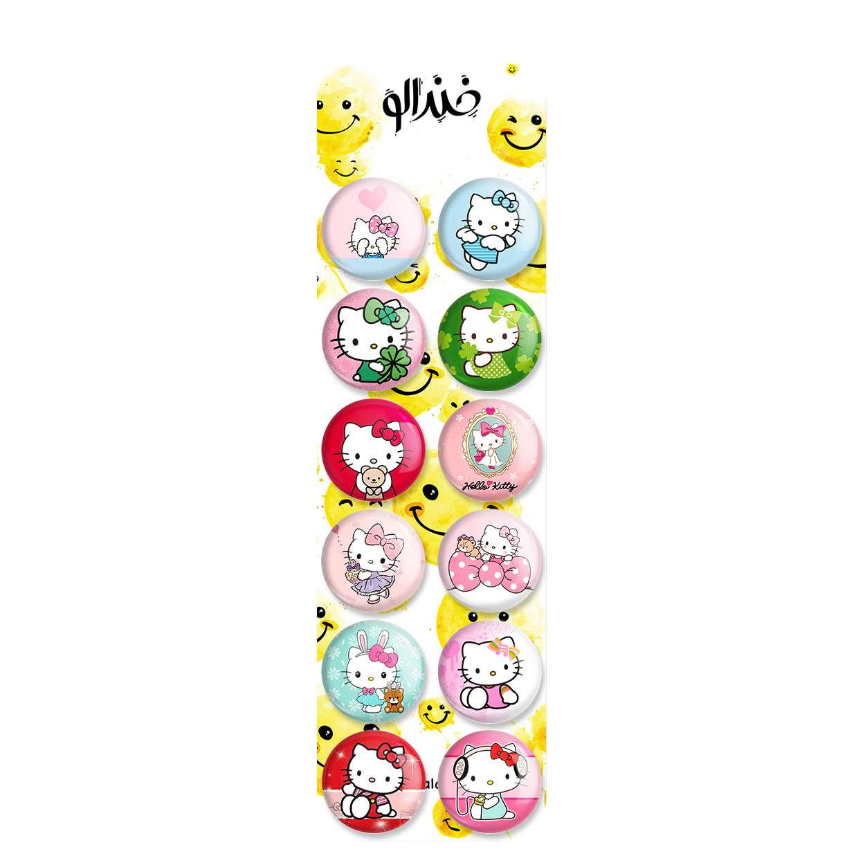 پک 12 عددی پیکسل خندالو طرح هلو کیتی (Hello Kitty) با روکش سلفون حرارتی براق ضدخش و قطعه پشتی رنگی تولید شده است. قطعات پشتی از میان 6 رنگ سفید، مشکی، صورتی، زرد، آبی و قرمز که با توجه به نوع و رنگبندی طرح روی پیکسل انتخاب شده اند تولید می شود و در هر بسته بندی مطابق عکس محصول می باشد. قطعات پلاستیکی پشت پیکسل با سوزن یک تکه ثابت و بدون لغزش و جا به جایی، ایستایی بسیار بهتری نسبت به پشتی فلزی پیکسل دارند که این مهم در تولید این محصول نیز رعایت شده است.
