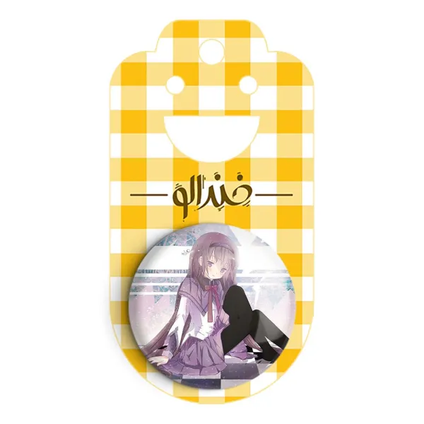 پیکسل 44 میلی متری همورا اکامی انیمه مادوکا مجیکا Madoka Magica خندالو با روکش سلفون حرارتی مات مخملی ضدخش و قطعه پشتی رنگی تولید شده است.پلاستیکی پشت پیکسل با سوزن یک تکه ثابت و بدون لغزش و جا به جایی، ایستایی بسیار بهتری نسبت به پشتی فلزی پیکسل دارند که این مهم در تولید این محصول نیز رعایت شده است.