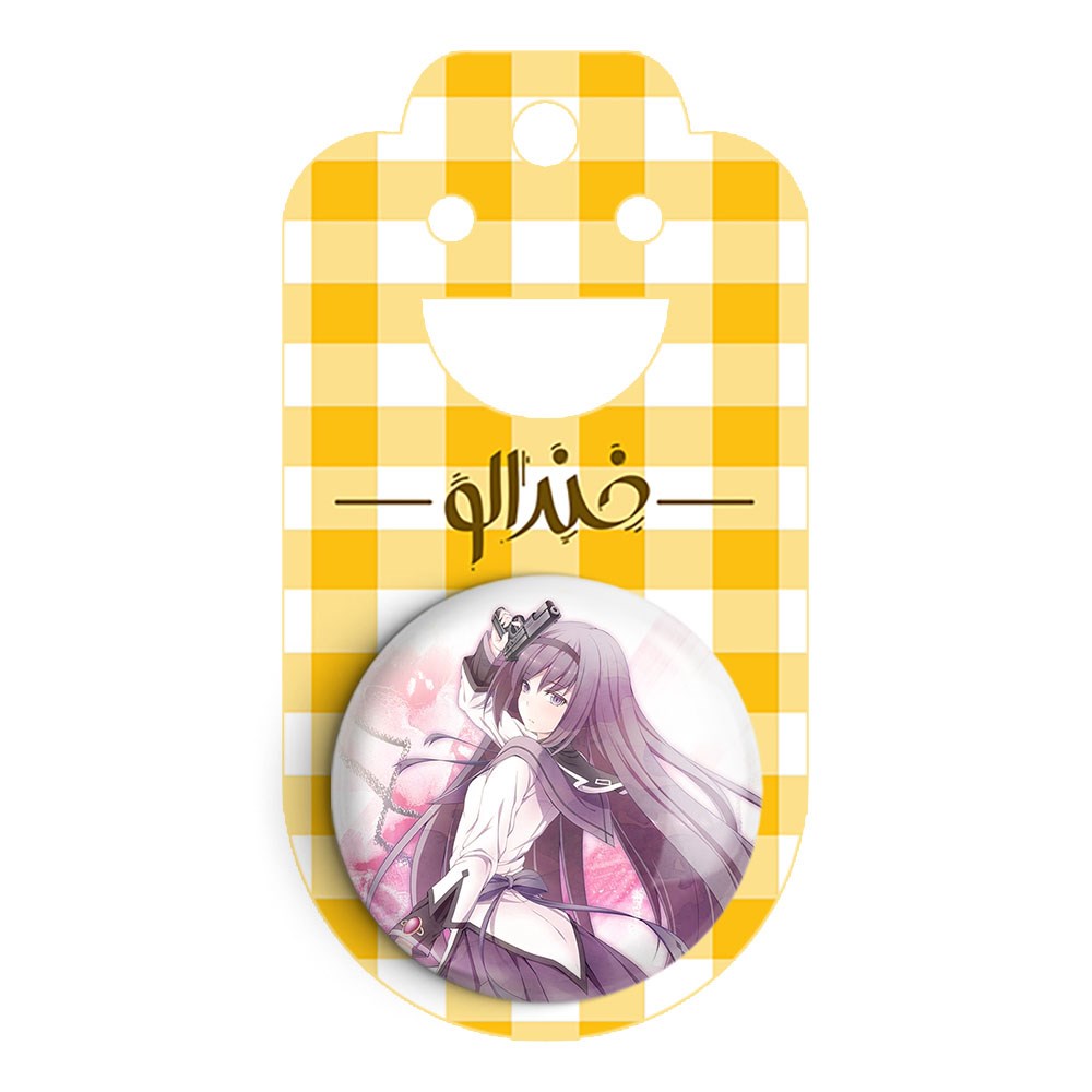 پیکسل 44 میلی متری همورا اکامی انیمه مادوکا مجیکا Madoka Magica خندالو با روکش سلفون حرارتی مات مخملی ضدخش و قطعه پشتی رنگی تولید شده است.پلاستیکی پشت پیکسل با سوزن یک تکه ثابت و بدون لغزش و جا به جایی، ایستایی بسیار بهتری نسبت به پشتی فلزی پیکسل دارند که این مهم در تولید این محصول نیز رعایت شده است.