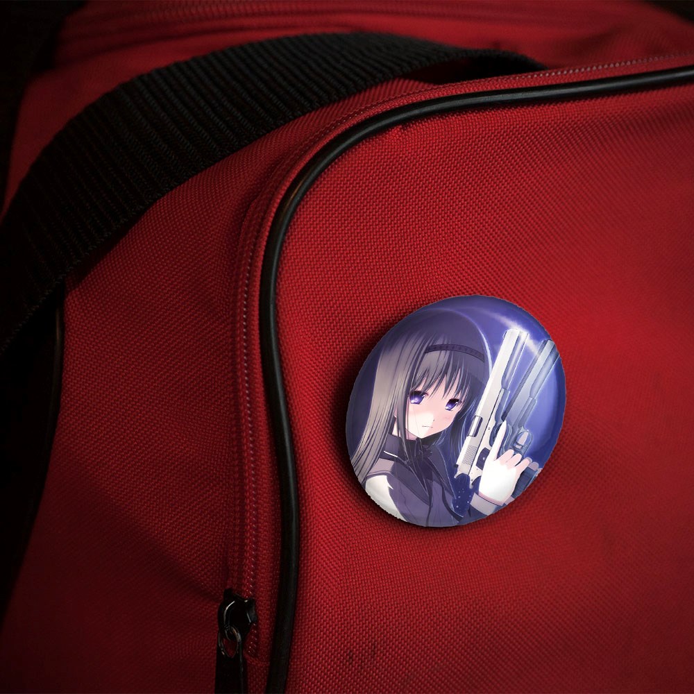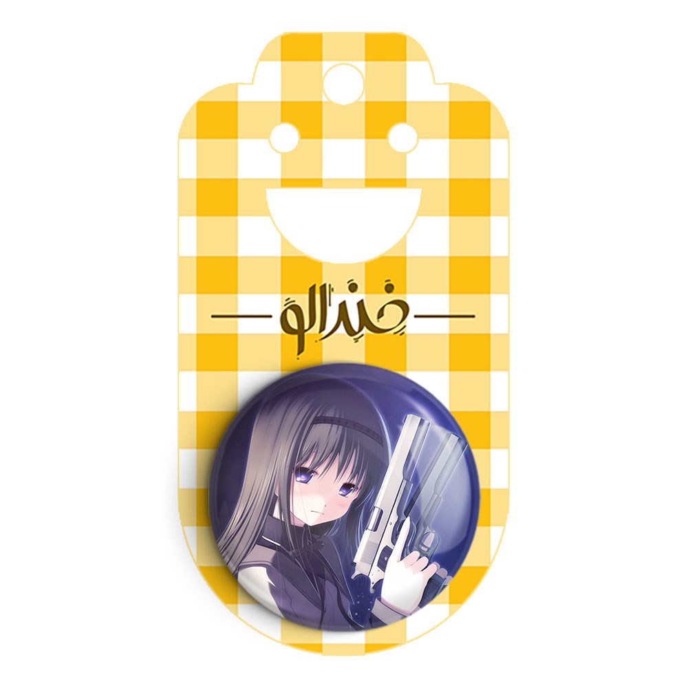 پیکسل 44 میلی متری همورا اکامی انیمه مادوکا مجیکا Madoka Magica خندالو با روکش سلفون حرارتی مات مخملی ضدخش و قطعه پشتی رنگی تولید شده است.پلاستیکی پشت پیکسل با سوزن یک تکه ثابت و بدون لغزش و جا به جایی، ایستایی بسیار بهتری نسبت به پشتی فلزی پیکسل دارند که این مهم در تولید این محصول نیز رعایت شده است.