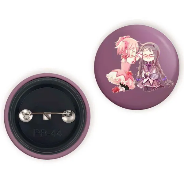 پیکسل 44 میلی متری همورا و مدوکا انیمه مادوکا مجیکا Madoka Magica خندالو با روکش سلفون حرارتی مات مخملی ضدخش و قطعه پشتی رنگی تولید شده است.پلاستیکی پشت پیکسل با سوزن یک تکه ثابت و بدون لغزش و جا به جایی، ایستایی بسیار بهتری نسبت به پشتی فلزی پیکسل دارند که این مهم در تولید این محصول نیز رعایت شده است.