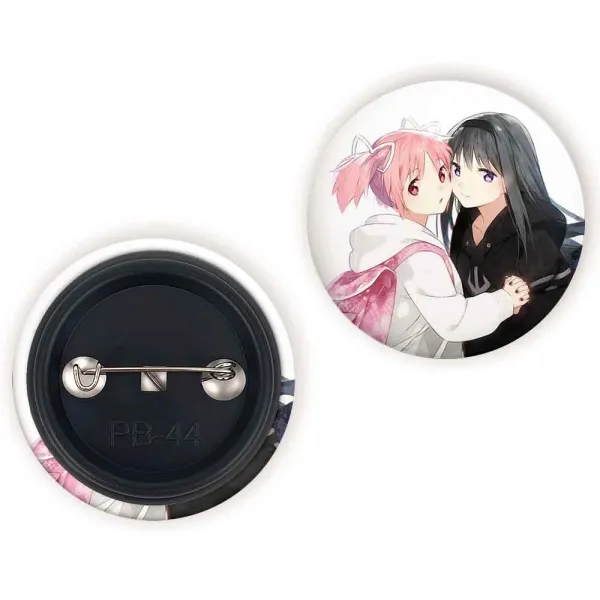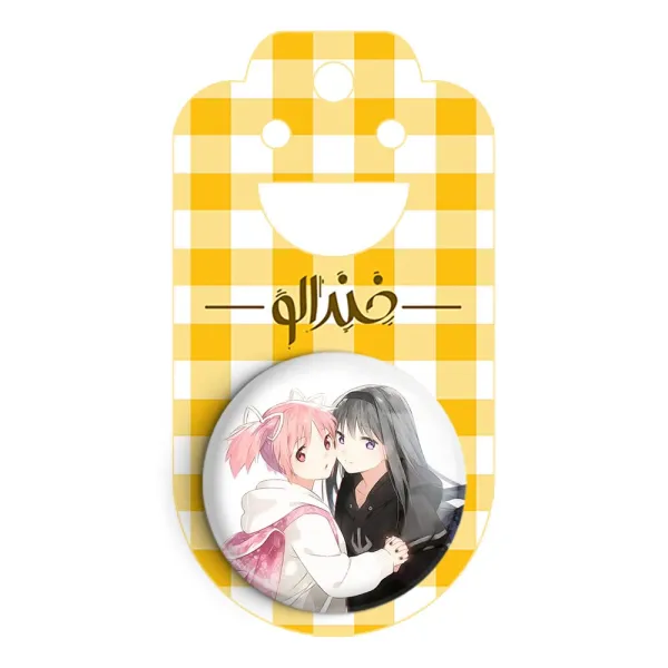 پیکسل 44 میلی متری همورا و مدوکا انیمه مادوکا مجیکا Madoka Magica خندالو با روکش سلفون حرارتی مات مخملی ضدخش و قطعه پشتی رنگی تولید شده است.پلاستیکی پشت پیکسل با سوزن یک تکه ثابت و بدون لغزش و جا به جایی، ایستایی بسیار بهتری نسبت به پشتی فلزی پیکسل دارند که این مهم در تولید این محصول نیز رعایت شده است.