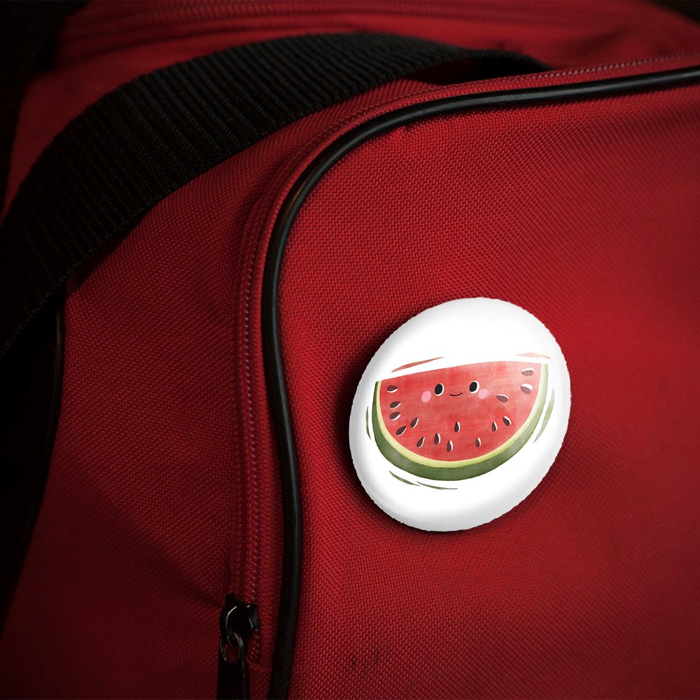 پیکسل 44 میلی متری هندوانه خندالو با روکش سلفون حرارتی مات مخملی ضدخش و قطعه پشتی رنگی تولید شده است.پلاستیکی پشت پیکسل با سوزن یک تکه ثابت و بدون لغزش و جا به جایی، ایستایی بسیار بهتری نسبت به پشتی فلزی پیکسل دارند که این مهم در تولید این محصول نیز رعایت شده است.