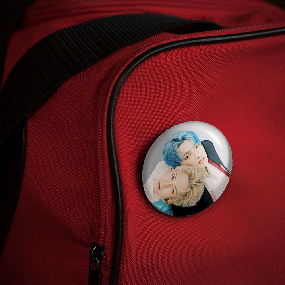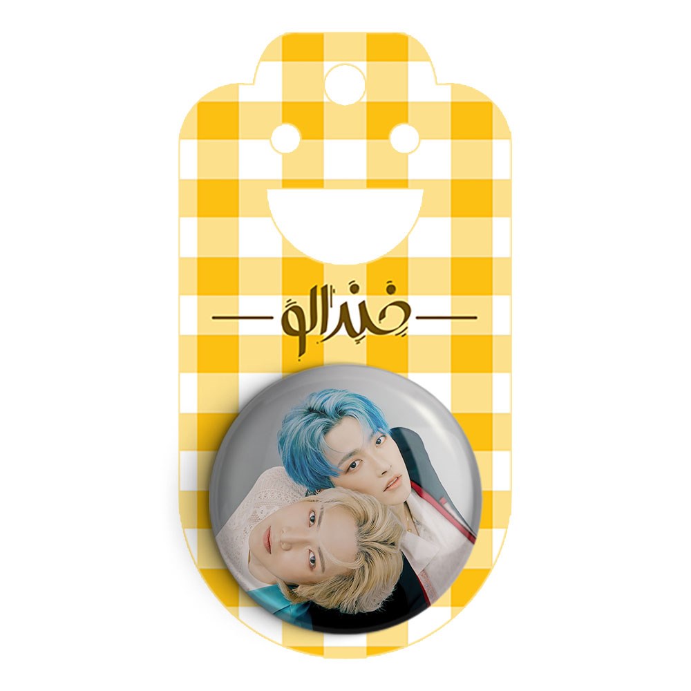 پیکسل 44 میلی متری هنگ جوون و یوسانگ گروه ایتیز ATEEZ خندالو با روکش سلفون حرارتی مات مخملی ضدخش و قطعه پشتی رنگی تولید شده است.پلاستیکی پشت پیکسل با سوزن یک تکه ثابت و بدون لغزش و جا به جایی، ایستایی بسیار بهتری نسبت به پشتی فلزی پیکسل دارند که این مهم در تولید این محصول نیز رعایت شده است.