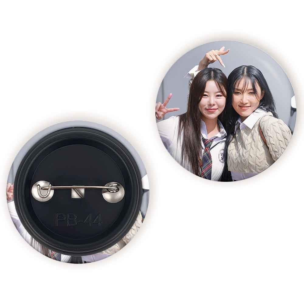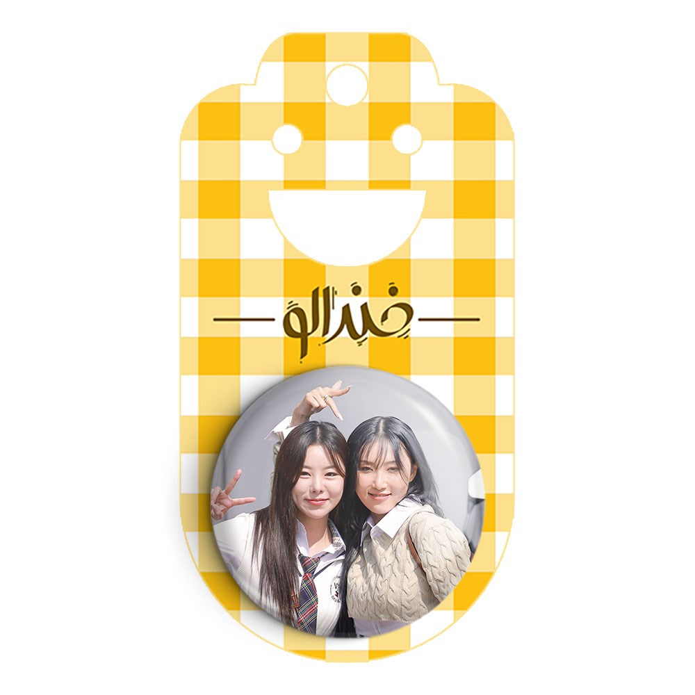 پیکسل 44 میلی متری هوآسا و ویین گروه مامامو Mamamoo خندالو با روکش سلفون حرارتی مات مخملی ضدخش و قطعه پشتی رنگی تولید شده است.پلاستیکی پشت پیکسل با سوزن یک تکه ثابت و بدون لغزش و جا به جایی، ایستایی بسیار بهتری نسبت به پشتی فلزی پیکسل دارند که این مهم در تولید این محصول نیز رعایت شده است.