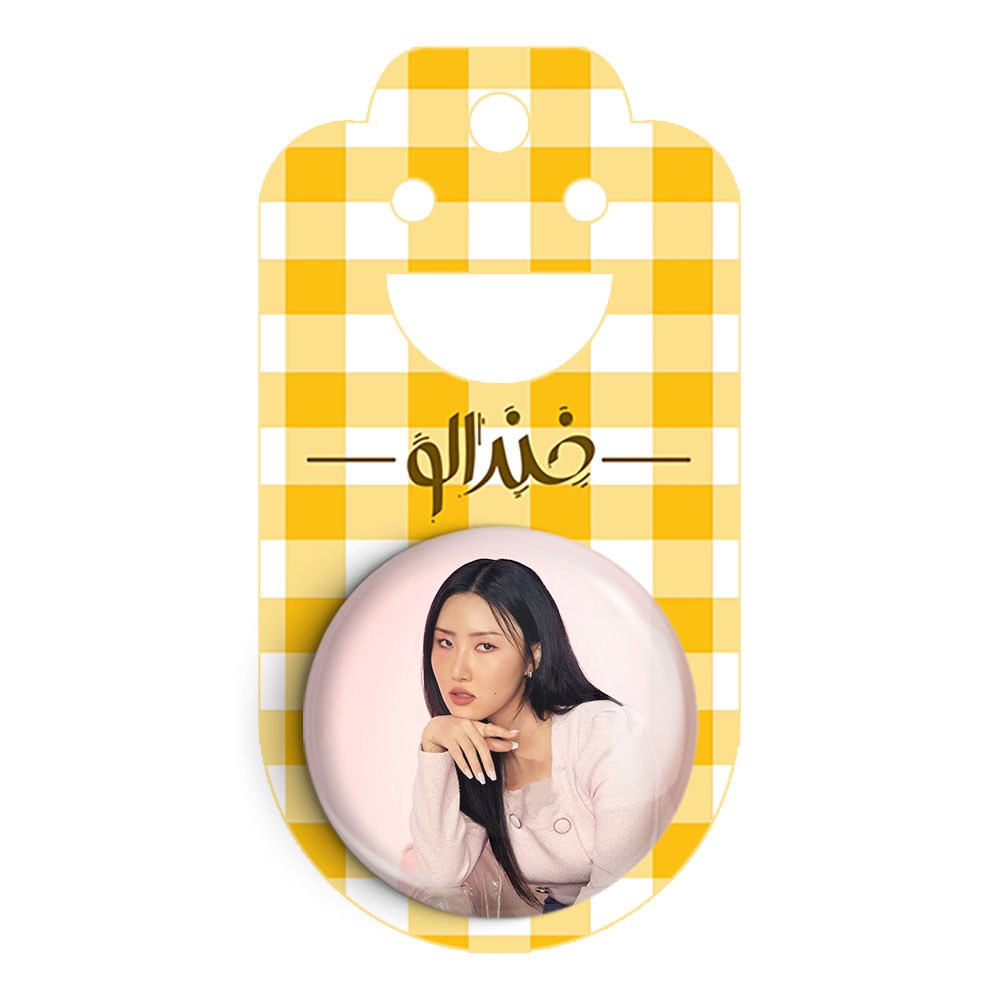 پیکسل 44 میلی متری هوآسا گروه مامامو Mamamoo خندالو با روکش سلفون حرارتی مات مخملی ضدخش و قطعه پشتی رنگی تولید شده است.پلاستیکی پشت پیکسل با سوزن یک تکه ثابت و بدون لغزش و جا به جایی، ایستایی بسیار بهتری نسبت به پشتی فلزی پیکسل دارند که این مهم در تولید این محصول نیز رعایت شده است.