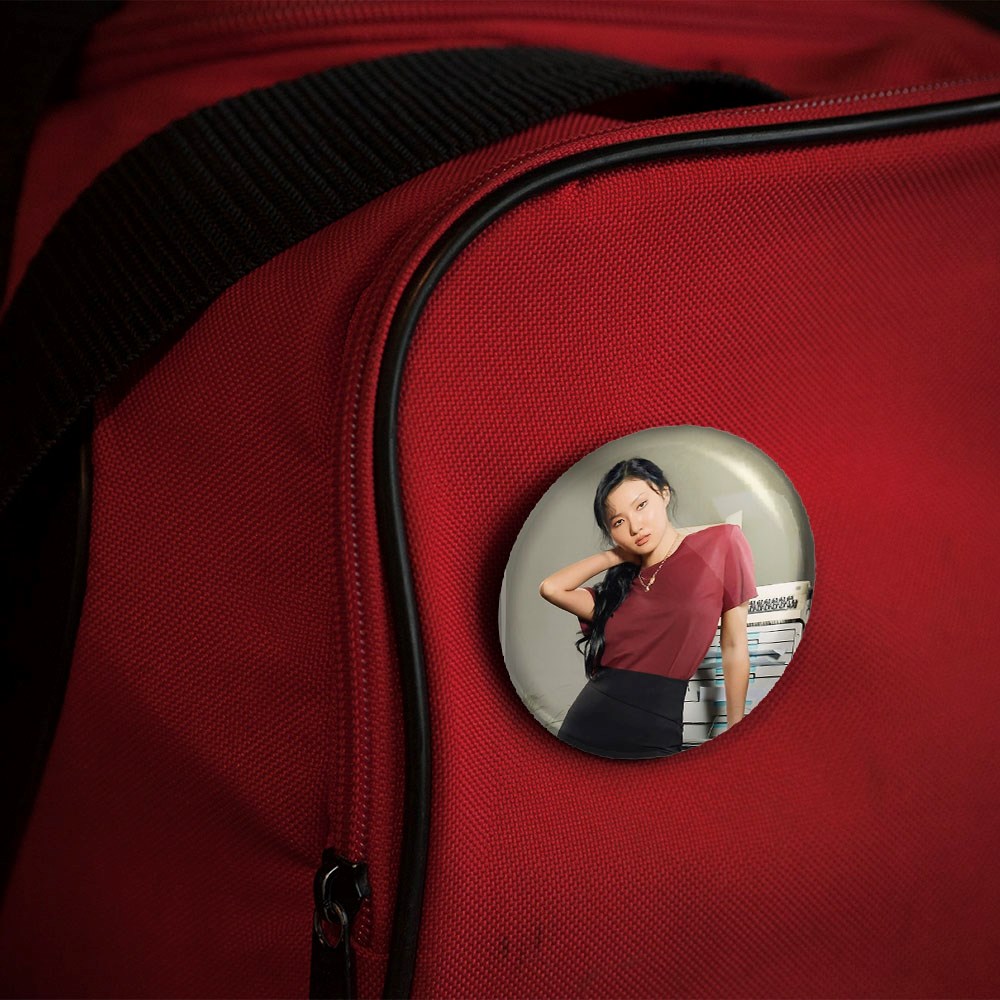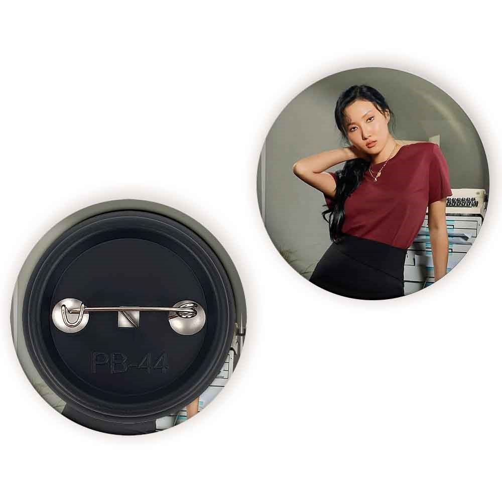 پیکسل 44 میلی متری هوآسا گروه مامامو Mamamoo خندالو با روکش سلفون حرارتی مات مخملی ضدخش و قطعه پشتی رنگی تولید شده است.پلاستیکی پشت پیکسل با سوزن یک تکه ثابت و بدون لغزش و جا به جایی، ایستایی بسیار بهتری نسبت به پشتی فلزی پیکسل دارند که این مهم در تولید این محصول نیز رعایت شده است.