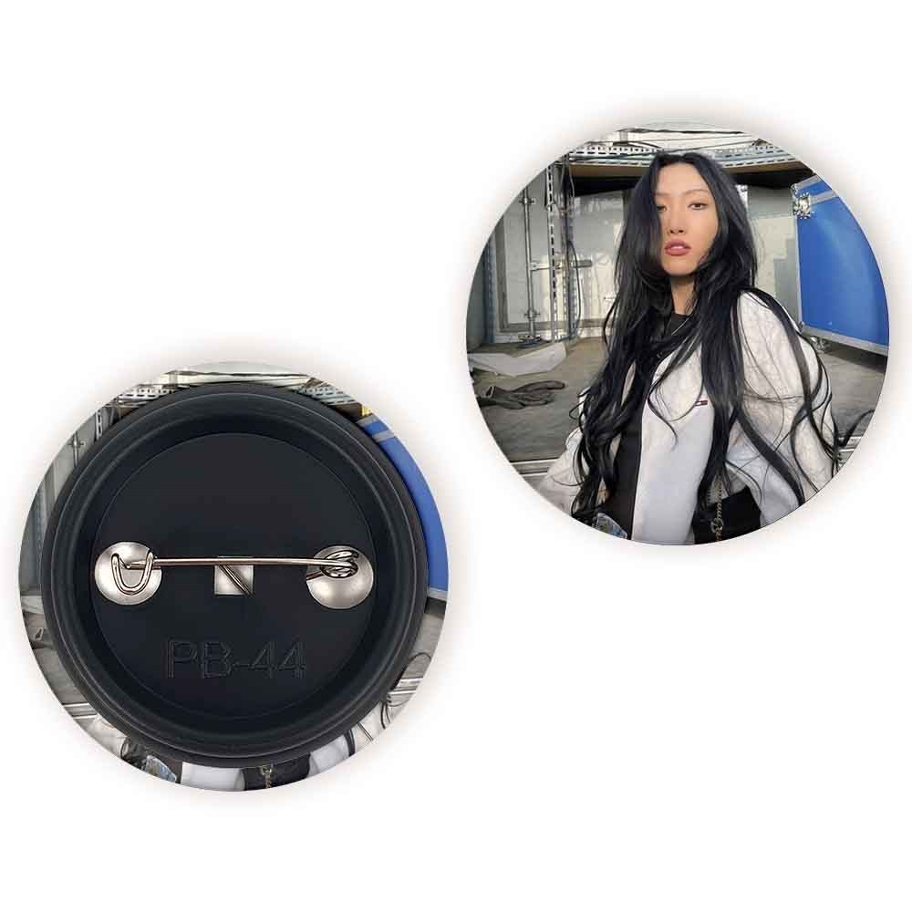 پیکسل 44 میلی متری هوآسا گروه مامامو Mamamoo خندالو با روکش سلفون حرارتی مات مخملی ضدخش و قطعه پشتی رنگی تولید شده است.پلاستیکی پشت پیکسل با سوزن یک تکه ثابت و بدون لغزش و جا به جایی، ایستایی بسیار بهتری نسبت به پشتی فلزی پیکسل دارند که این مهم در تولید این محصول نیز رعایت شده است.