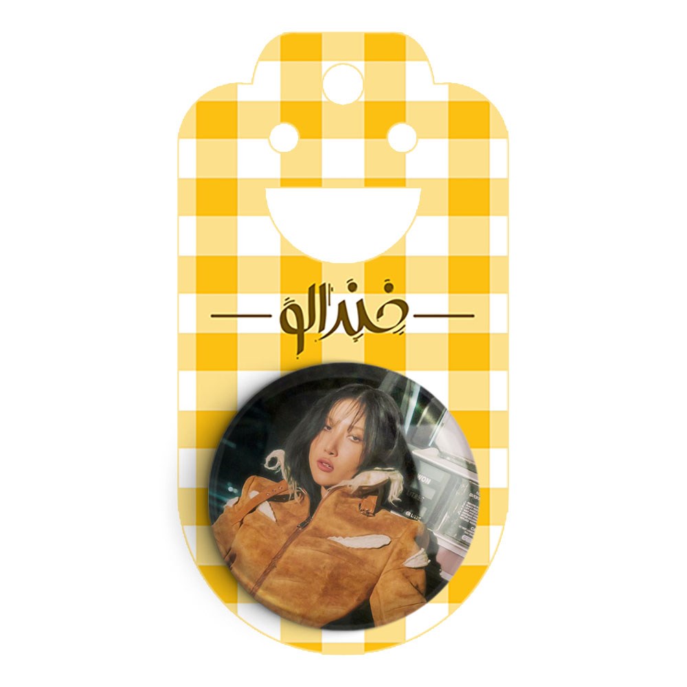 پیکسل 44 میلی متری هوآسا گروه مامامو Mamamoo خندالو با روکش سلفون حرارتی مات مخملی ضدخش و قطعه پشتی رنگی تولید شده است.پلاستیکی پشت پیکسل با سوزن یک تکه ثابت و بدون لغزش و جا به جایی، ایستایی بسیار بهتری نسبت به پشتی فلزی پیکسل دارند که این مهم در تولید این محصول نیز رعایت شده است.