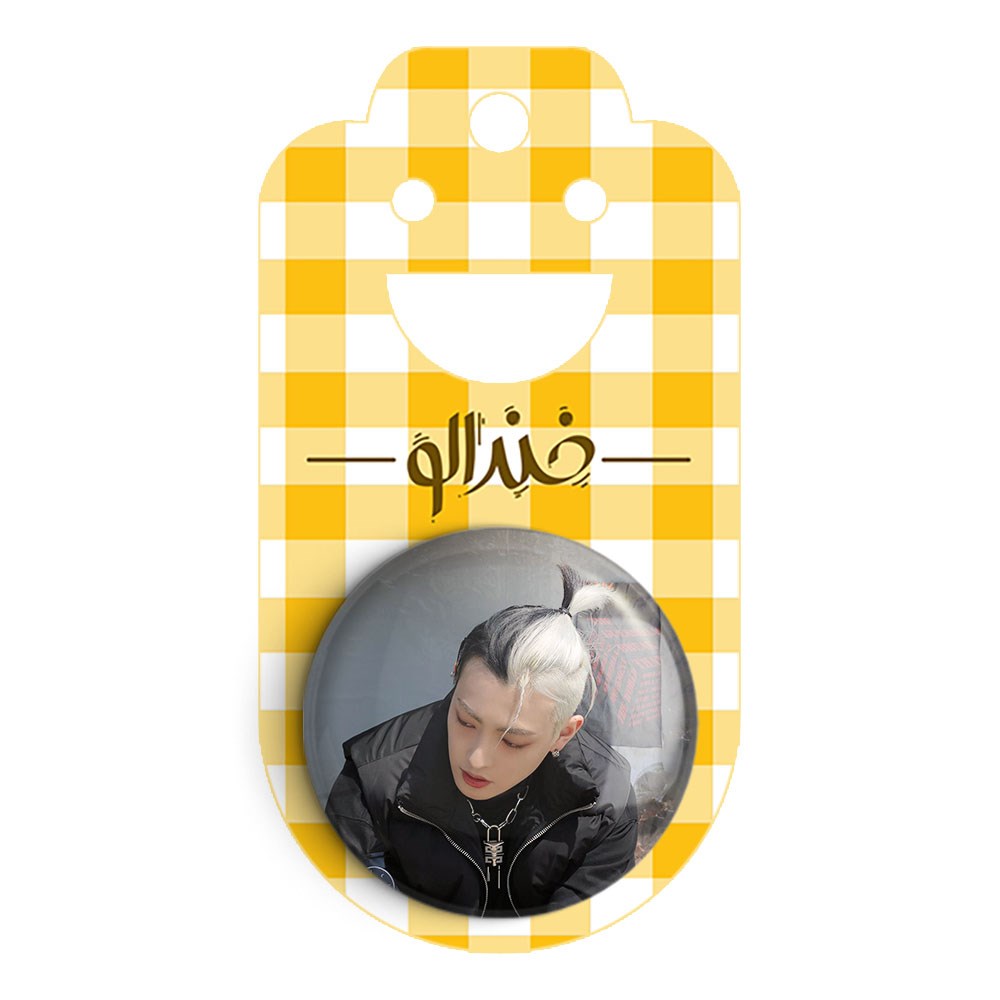 پیکسل 44 میلی متری هونگ جونگ گروه ایتیز ATEEZ خندالو با روکش سلفون حرارتی مات مخملی ضدخش و قطعه پشتی رنگی تولید شده است.پلاستیکی پشت پیکسل با سوزن یک تکه ثابت و بدون لغزش و جا به جایی، ایستایی بسیار بهتری نسبت به پشتی فلزی پیکسل دارند که این مهم در تولید این محصول نیز رعایت شده است.