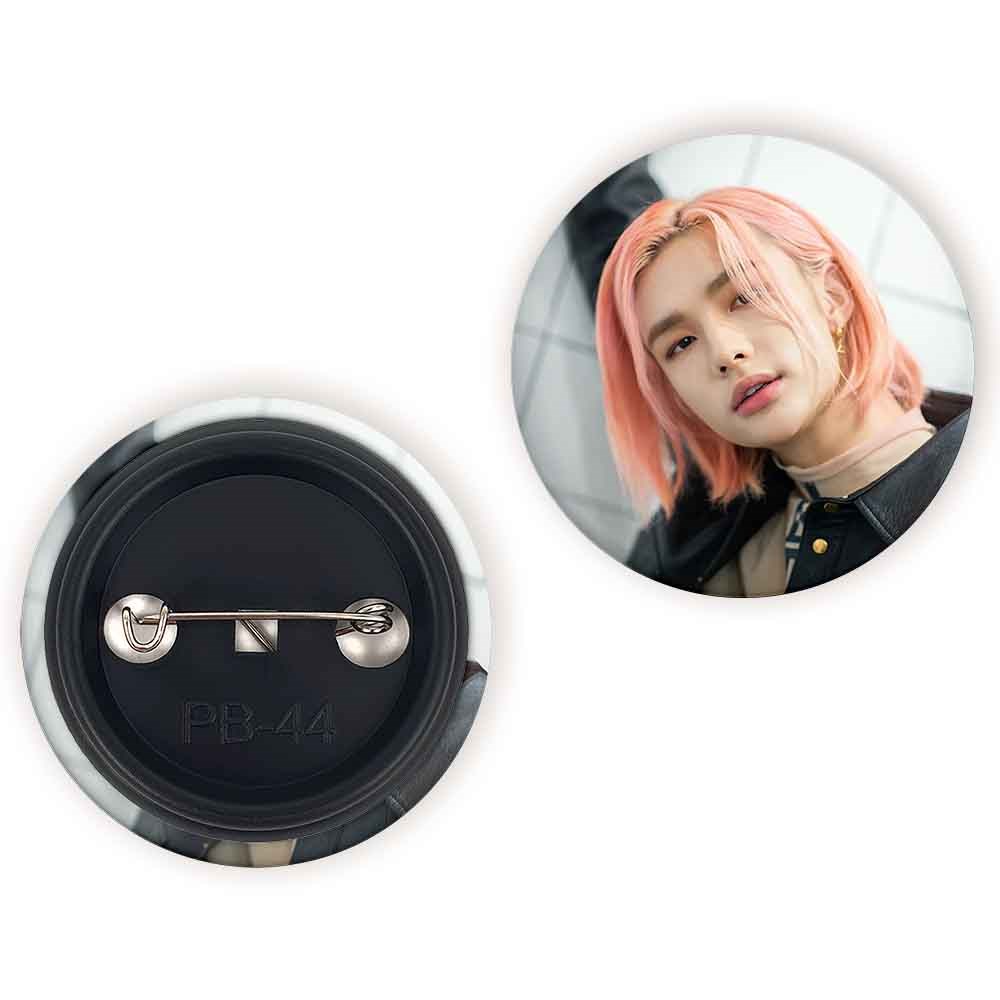 پیکسل 44 میلی متری هیونجین گروه استری کیدز Stray Kids خندالو با روکش سلفون حرارتی مات مخملی ضدخش و قطعه پشتی رنگی تولید شده است.پلاستیکی پشت پیکسل با سوزن یک تکه ثابت و بدون لغزش و جا به جایی، ایستایی بسیار بهتری نسبت به پشتی فلزی پیکسل دارند که این مهم در تولید این محصول نیز رعایت شده است.