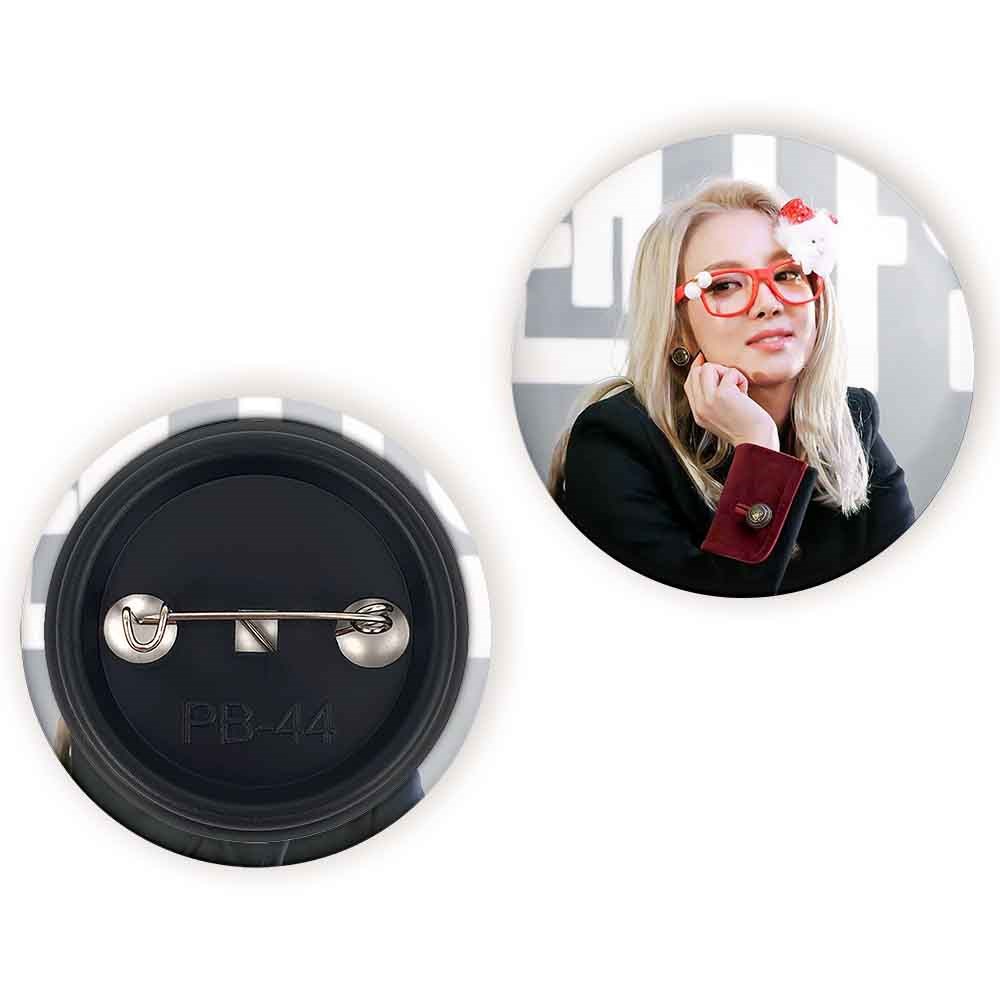 پیکسل 44 میلی متری هیویون گروه گرلز جنریشن Girls Generation خندالو با روکش سلفون حرارتی مات مخملی ضدخش و قطعه پشتی رنگی تولید شده است.پلاستیکی پشت پیکسل با سوزن یک تکه ثابت و بدون لغزش و جا به جایی، ایستایی بسیار بهتری نسبت به پشتی فلزی پیکسل دارند که این مهم در تولید این محصول نیز رعایت شده است.
