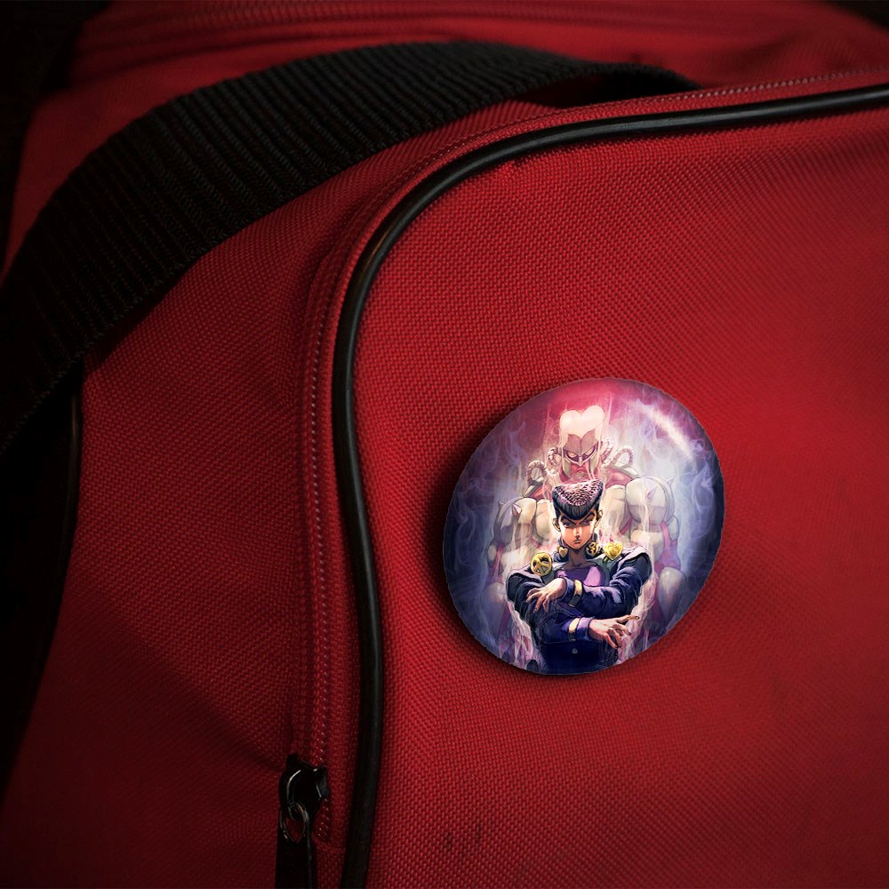 پیکسل 44 میلی متری هیگاشکاتا جوسکه انیمه جوجو Jojo خندالو با روکش سلفون حرارتی مات مخملی ضدخش و قطعه پشتی رنگی تولید شده است. قطعات پلاستیکی پشت پیکسل با سوزن یک تکه ثابت و بدون لغزش و جا به جایی، ایستایی بسیار بهتری نسبت به پشتی فلزی پیکسل دارند که این مهم در تولید این محصول نیز رعایت شده است. چاپ پیکسل هیگاشکاتا جوسکه انیمه جوجو Jojo نیز با دستگاه های استاندارد و با بهترین سطح کیفی صورت گرفته و طرح با شفافیتی مثال زدنی و با سلفونی بدون شکست نور بر روی پیکسل نقش بسته است. همچنین بسته بندی جذاب و مینیمال پیکسل هیگاشکاتا جوسکه انیمه جوجو Jojo ، آنها را مناسب هدیه کرده است.