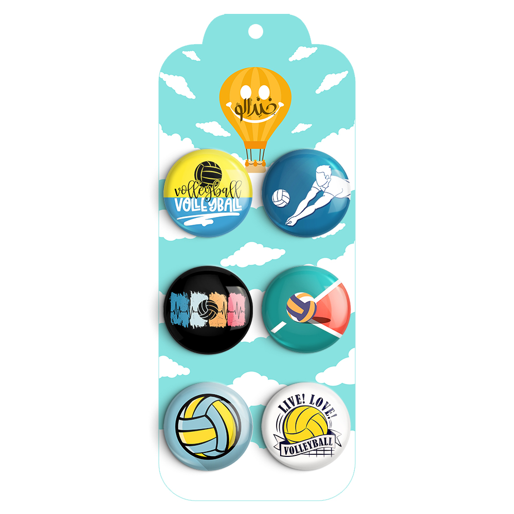 مجموعه 6 عددی پیکسل خندالو طرح والیبال (Volleyball) با روکش سلفون حرارتی براق ضدخش و قطعه پشتی رنگی تولید شده است. قطعات پشتی از میان 6 رنگ سفید، مشکی، صورتی، زرد، آبی و قرمز که با توجه به نوع و رنگبندی طرح روی پیکسل انتخاب شده اند تولید می شود و در هر بسته بندی مطابق عکس محصول می باشد.