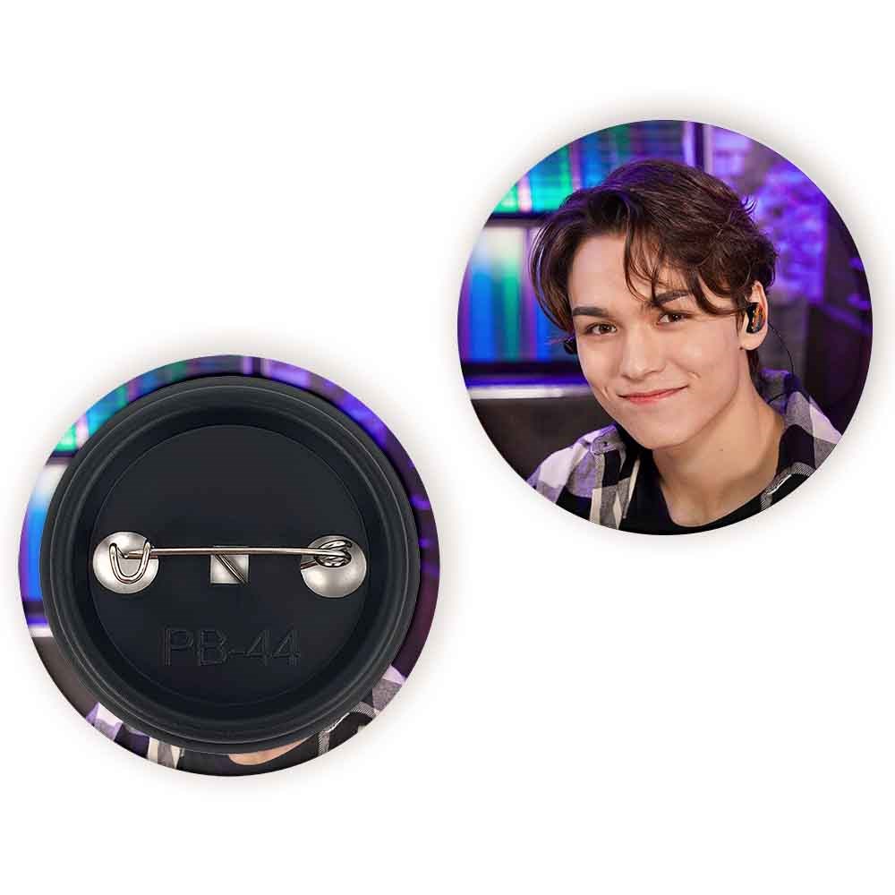 پیکسل 44 میلی متری ورنون گروه سونتین Seventeen خندالو با روکش سلفون حرارتی مات مخملی ضدخش و قطعه پشتی رنگی تولید شده است.پلاستیکی پشت پیکسل با سوزن یک تکه ثابت و بدون لغزش و جا به جایی، ایستایی بسیار بهتری نسبت به پشتی فلزی پیکسل دارند که این مهم در تولید این محصول نیز رعایت شده است.