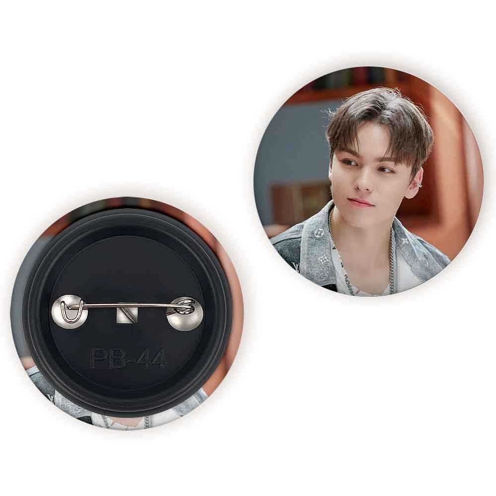 پیکسل 44 میلی متری ورنون گروه سونتین Seventeen خندالو با روکش سلفون حرارتی مات مخملی ضدخش و قطعه پشتی رنگی تولید شده است.پلاستیکی پشت پیکسل با سوزن یک تکه ثابت و بدون لغزش و جا به جایی، ایستایی بسیار بهتری نسبت به پشتی فلزی پیکسل دارند که این مهم در تولید این محصول نیز رعایت شده است.