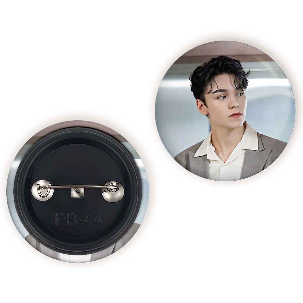 پیکسل 44 میلی متری ورنون گروه سونتین Seventeen خندالو با روکش سلفون حرارتی مات مخملی ضدخش و قطعه پشتی رنگی تولید شده است.پلاستیکی پشت پیکسل با سوزن یک تکه ثابت و بدون لغزش و جا به جایی، ایستایی بسیار بهتری نسبت به پشتی فلزی پیکسل دارند که این مهم در تولید این محصول نیز رعایت شده است.