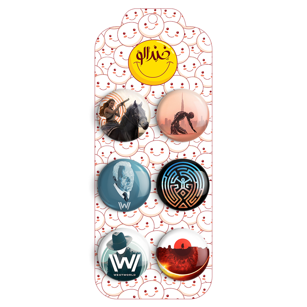 مجموعه 6 عددی پیکسل خندالو طرح وست ورلد با روکش سلفون حرارتی براق ضدخش و قطعه پشتی رنگی تولید شده است. قطعات پشتی از میان 6 رنگ سفید، مشکی، صورتی، زرد، آبی و قرمز که با توجه به نوع و رنگبندی طرح روی پیکسل انتخاب شده اند تولید می شود و در هر بسته بندی مطابق عکس محصول می باشد. قطعات پلاستیکی پشت پیکسل با سوزن یک تکه ثابت و بدون لغزش و جا به جایی، ایستایی بسیار بهتری نسبت به پشتی فلزی پیکسل دارند که این مهم در تولید این محصول نیز رعایت شده است. چاپ پیکسل نیز با دستگاه های استاندارد و با بهترین سطح کیفی صورت گرفته و طرح با شفافیتی مثال زدنی و با سلفونی بدون شکست نور بر روی پیکسل نقش بسته است. همچنین بسته بندی جذاب و مینیمال پیکسل ها، آنها را مناسب هدیه کرده است..