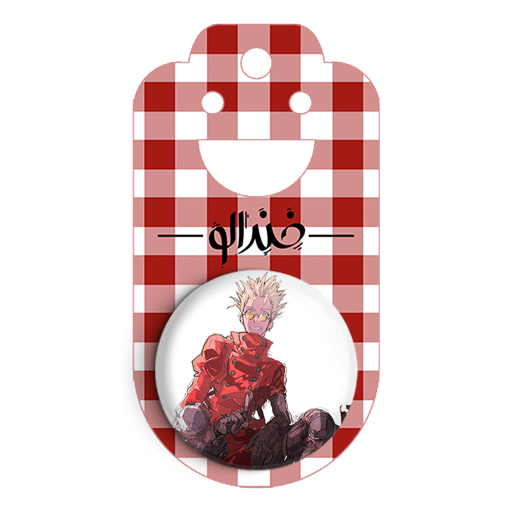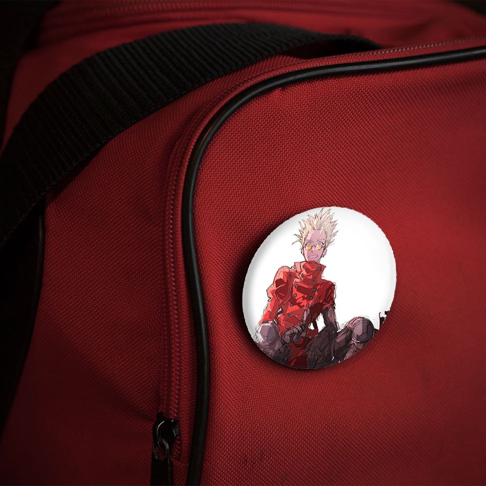 پیکسل 44 میلی متری وش انیمه تریگان (Trigun)خندالو با روکش سلفون حرارتی مات مخملی ضدخش و قطعه پشتی رنگی تولید شده است. قطعات پلاستیکی پشت پیکسل با سوزن یک تکه ثابت و بدون لغزش و جا به جایی، ایستایی بسیار بهتری نسبت به پشتی فلزی پیکسل دارند که این مهم در تولید این محصول نیز رعایت شده است.