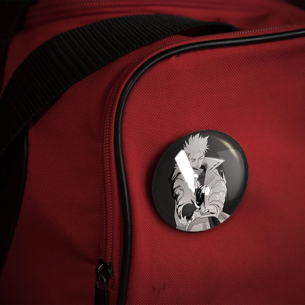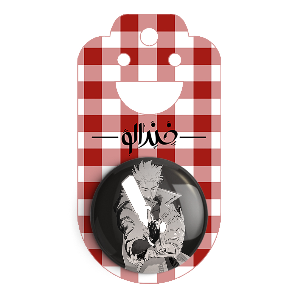پیکسل 44 میلی متری وش انیمه تریگان (Trigun)خندالو با روکش سلفون حرارتی مات مخملی ضدخش و قطعه پشتی رنگی تولید شده است. قطعات پلاستیکی پشت پیکسل با سوزن یک تکه ثابت و بدون لغزش و جا به جایی، ایستایی بسیار بهتری نسبت به پشتی فلزی پیکسل دارند که این مهم در تولید این محصول نیز رعایت شده است.