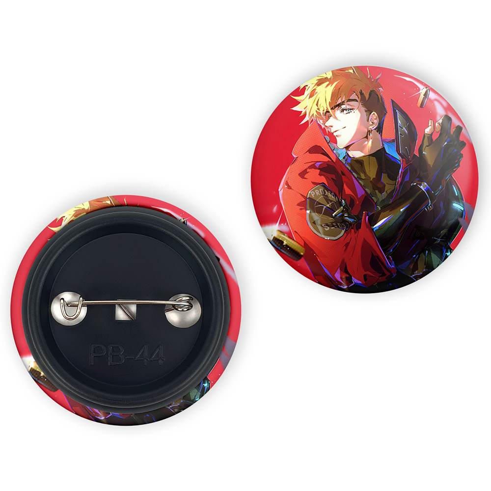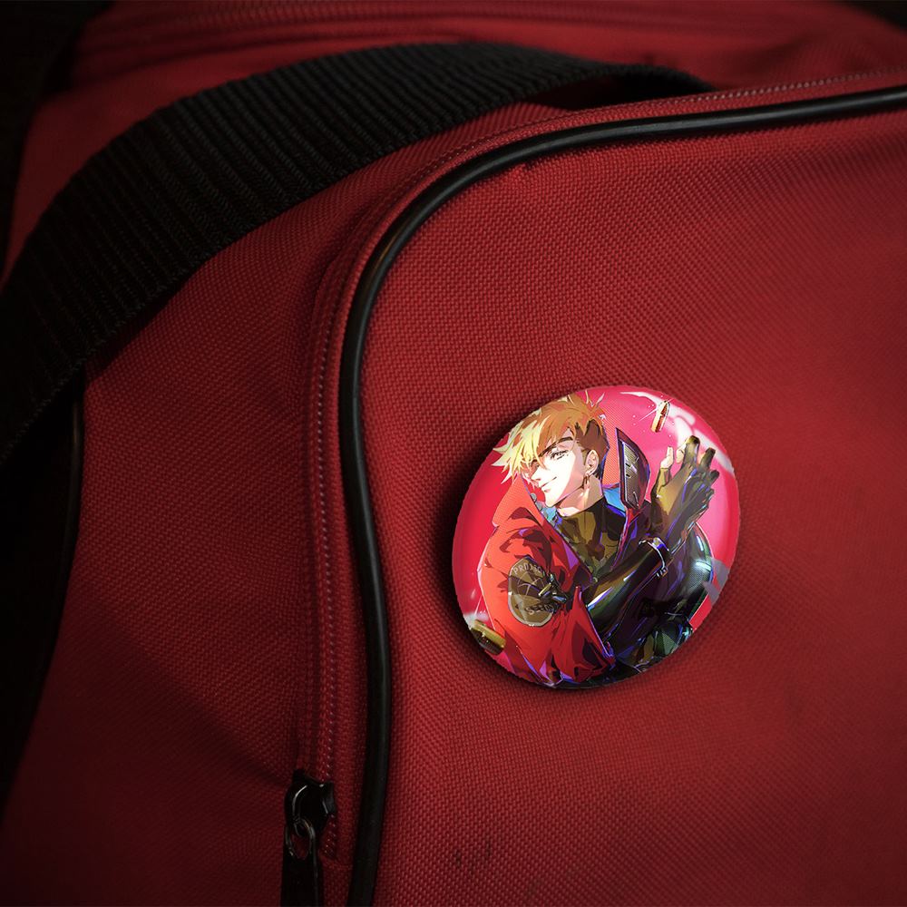 پیکسل 44 میلی متری وش انیمه تریگان (Trigun)خندالو با روکش سلفون حرارتی مات مخملی ضدخش و قطعه پشتی رنگی تولید شده است. قطعات پلاستیکی پشت پیکسل با سوزن یک تکه ثابت و بدون لغزش و جا به جایی، ایستایی بسیار بهتری نسبت به پشتی فلزی پیکسل دارند که این مهم در تولید این محصول نیز رعایت شده است.