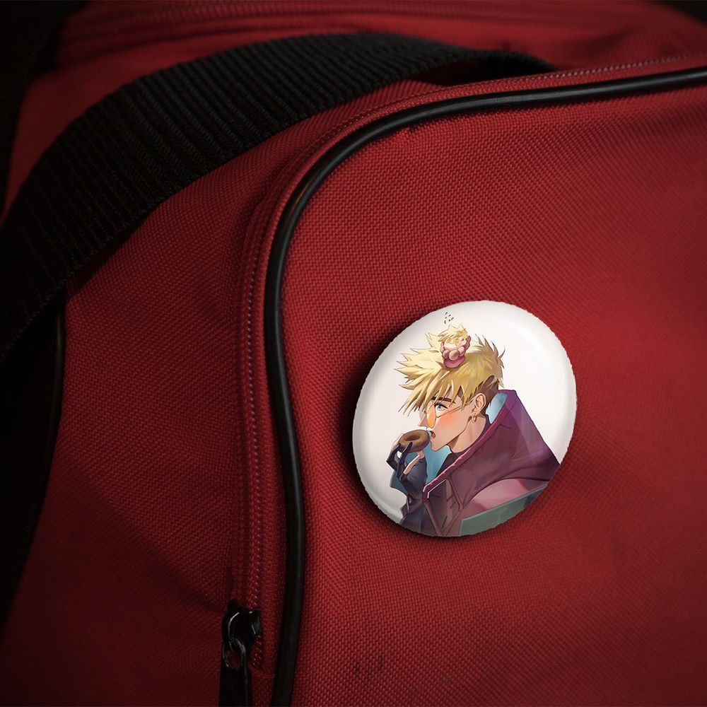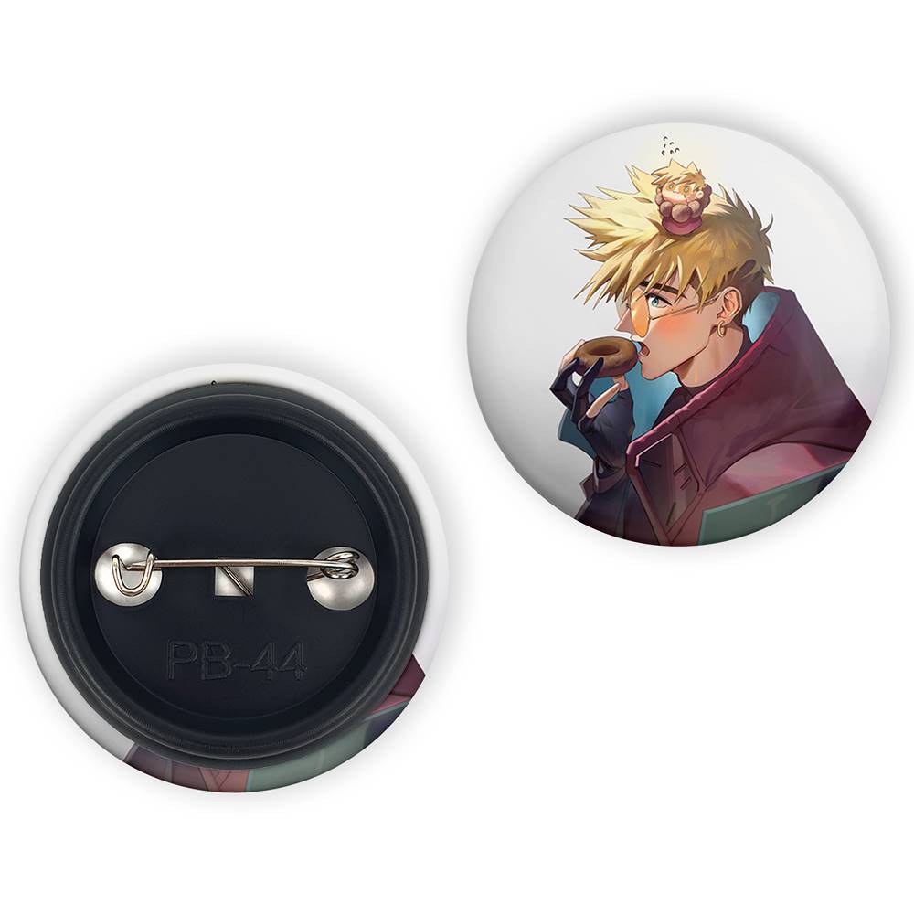 پیکسل 44 میلی متری وش انیمه تریگان (Trigun)خندالو با روکش سلفون حرارتی مات مخملی ضدخش و قطعه پشتی رنگی تولید شده است. قطعات پلاستیکی پشت پیکسل با سوزن یک تکه ثابت و بدون لغزش و جا به جایی، ایستایی بسیار بهتری نسبت به پشتی فلزی پیکسل دارند که این مهم در تولید این محصول نیز رعایت شده است.